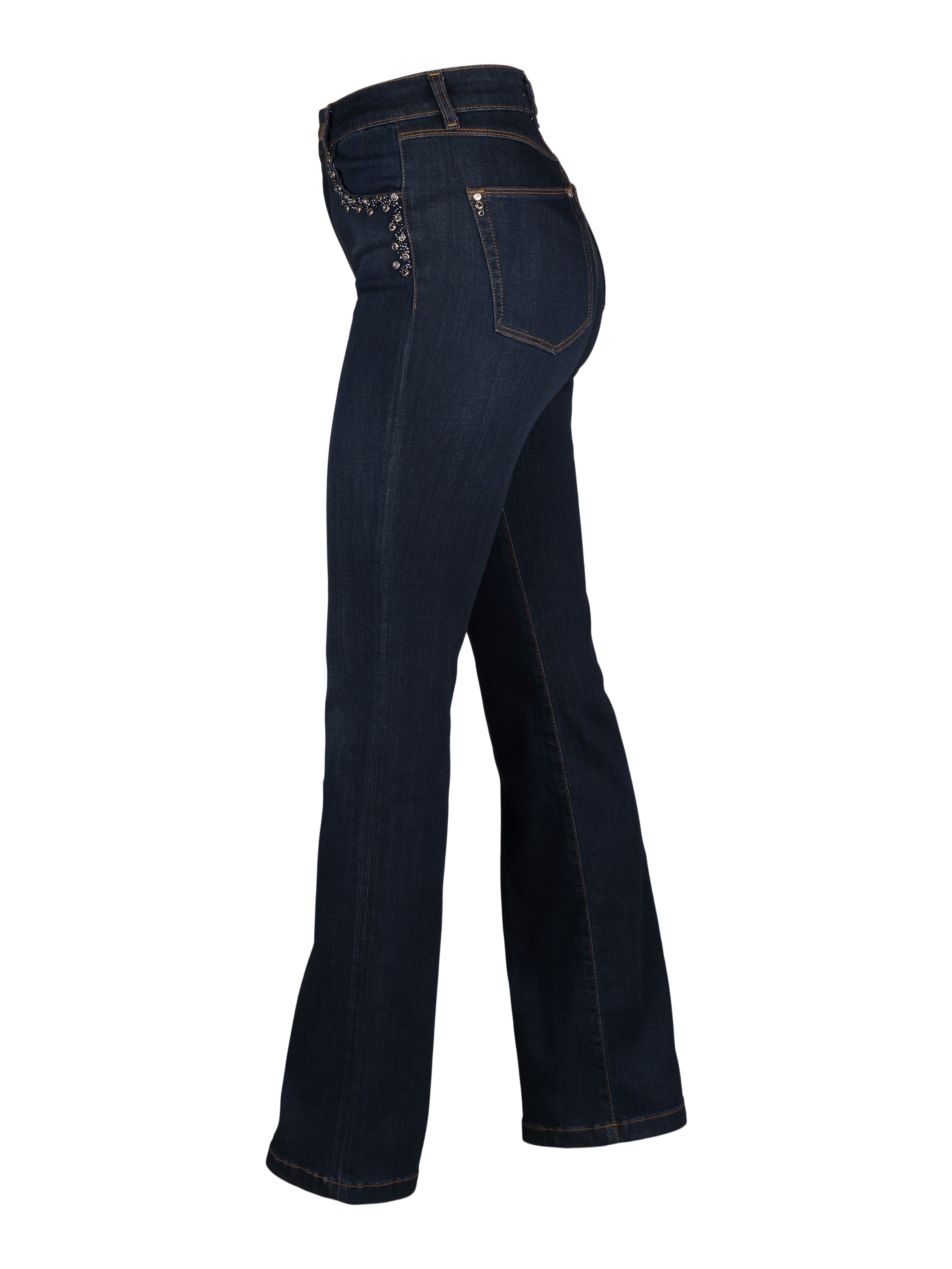 - Figurnära modell i mörkblå tvätt med hög midja.