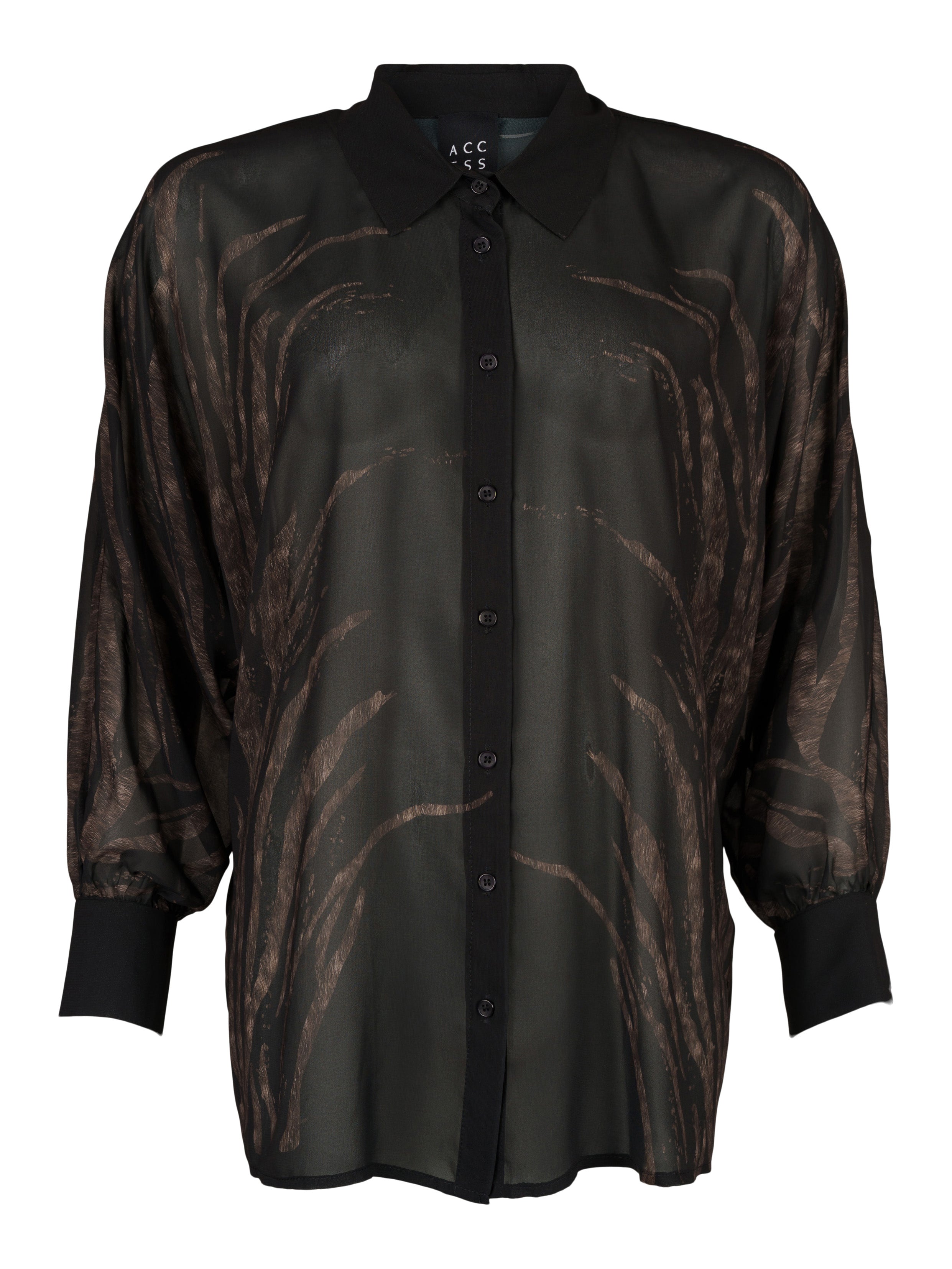 - Svart chiffongblus i brunt och svart.