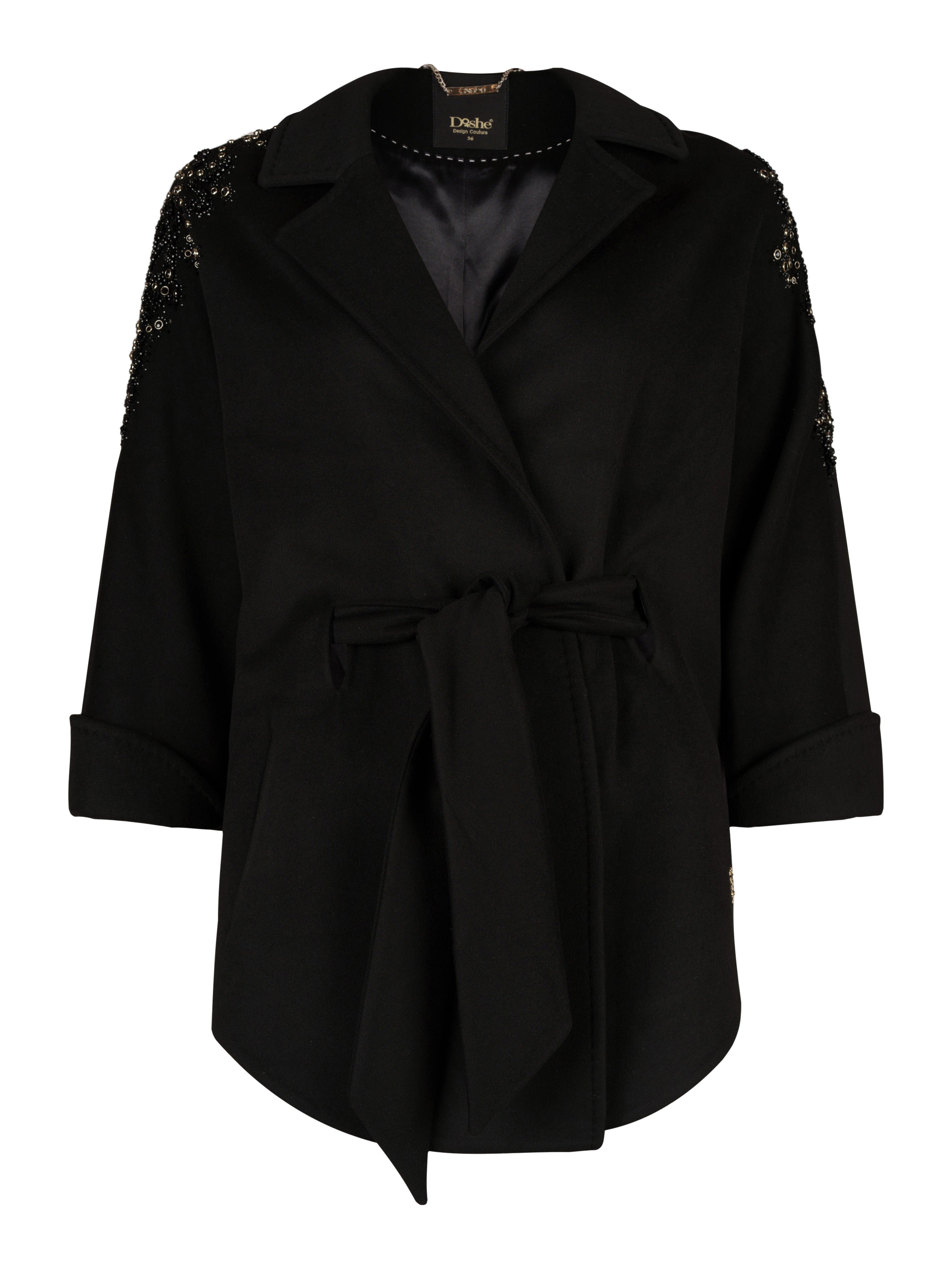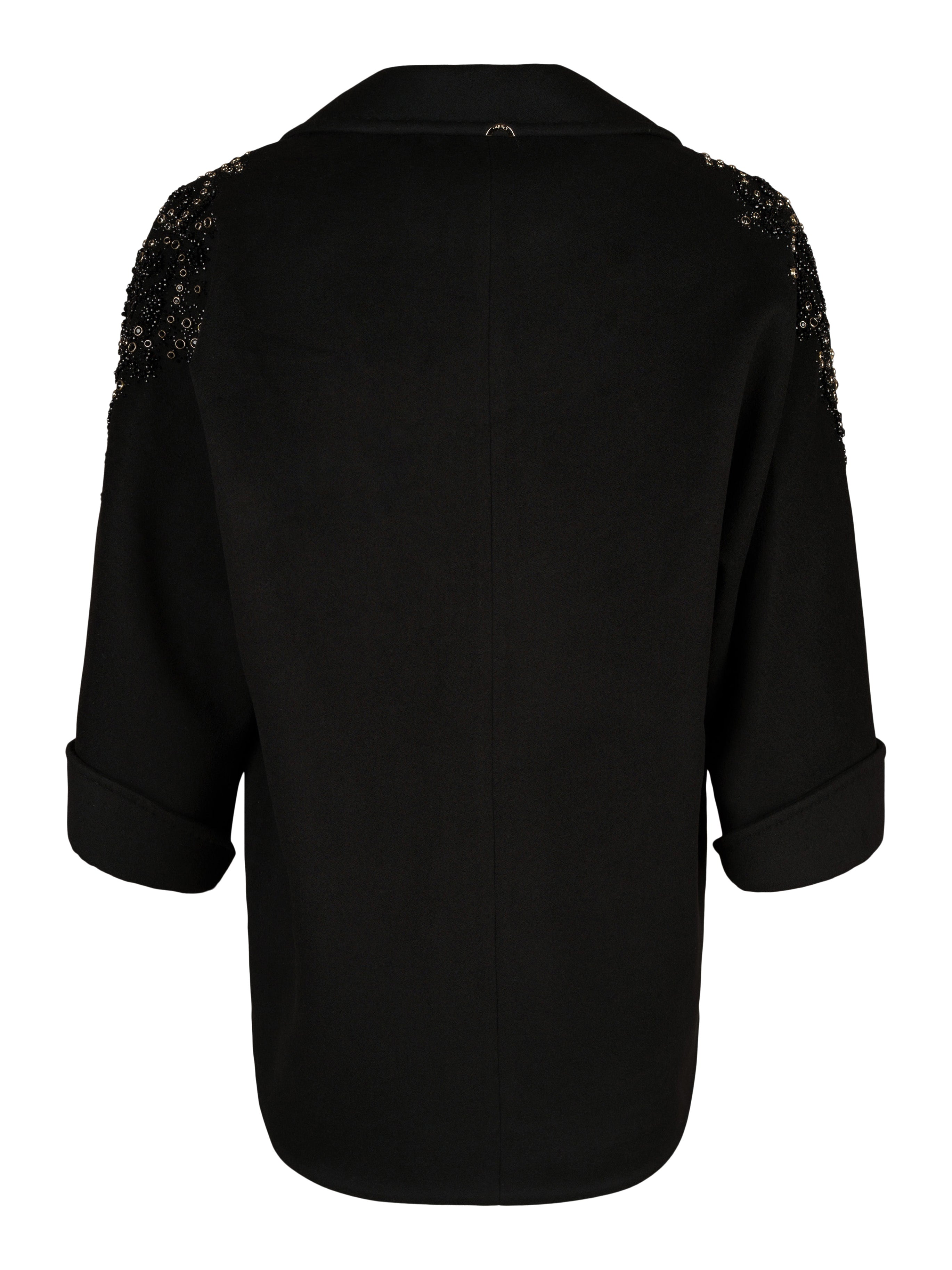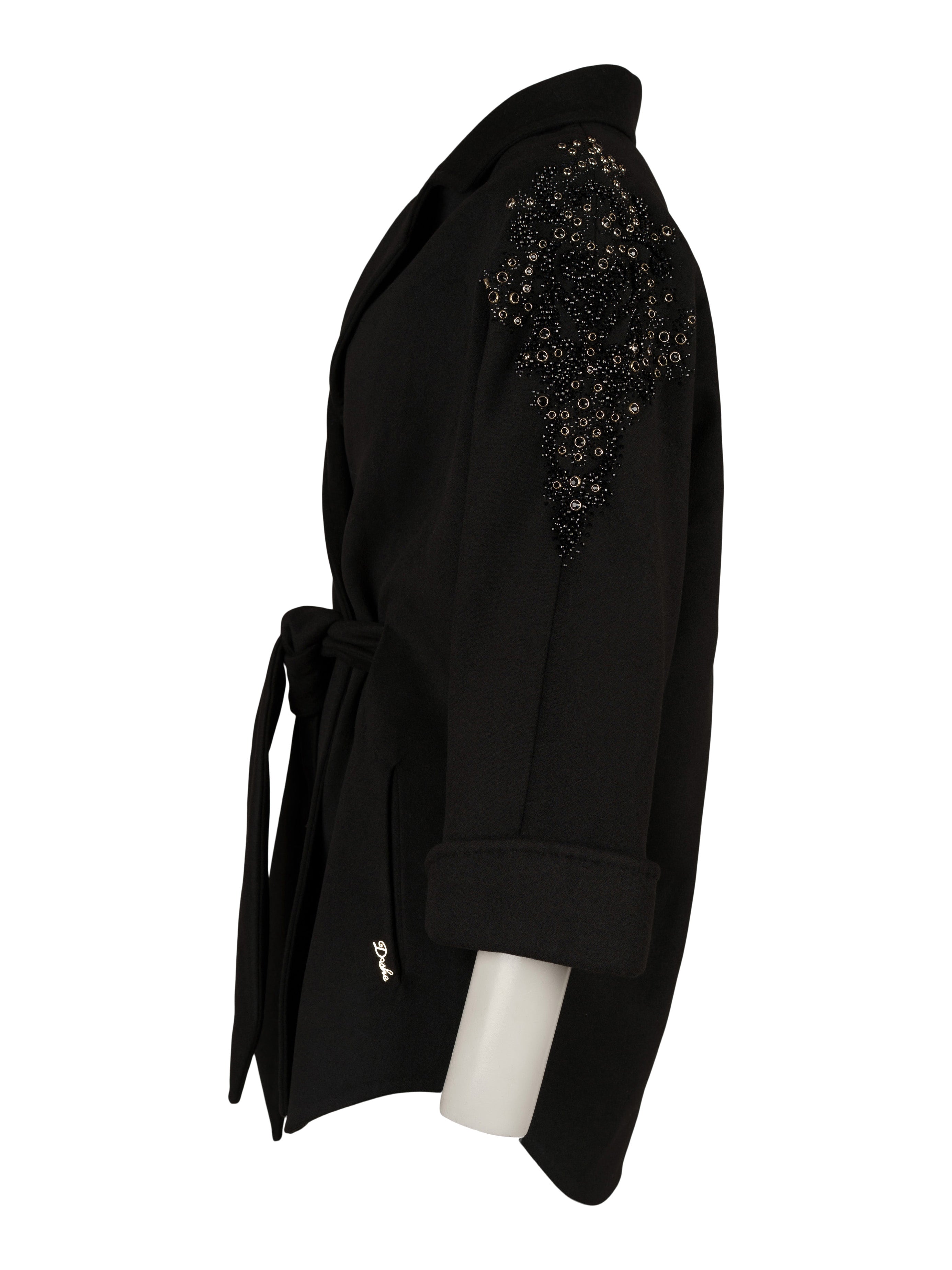 - Dekorerad med svarta strasstenar i olika storlekar över axlar.