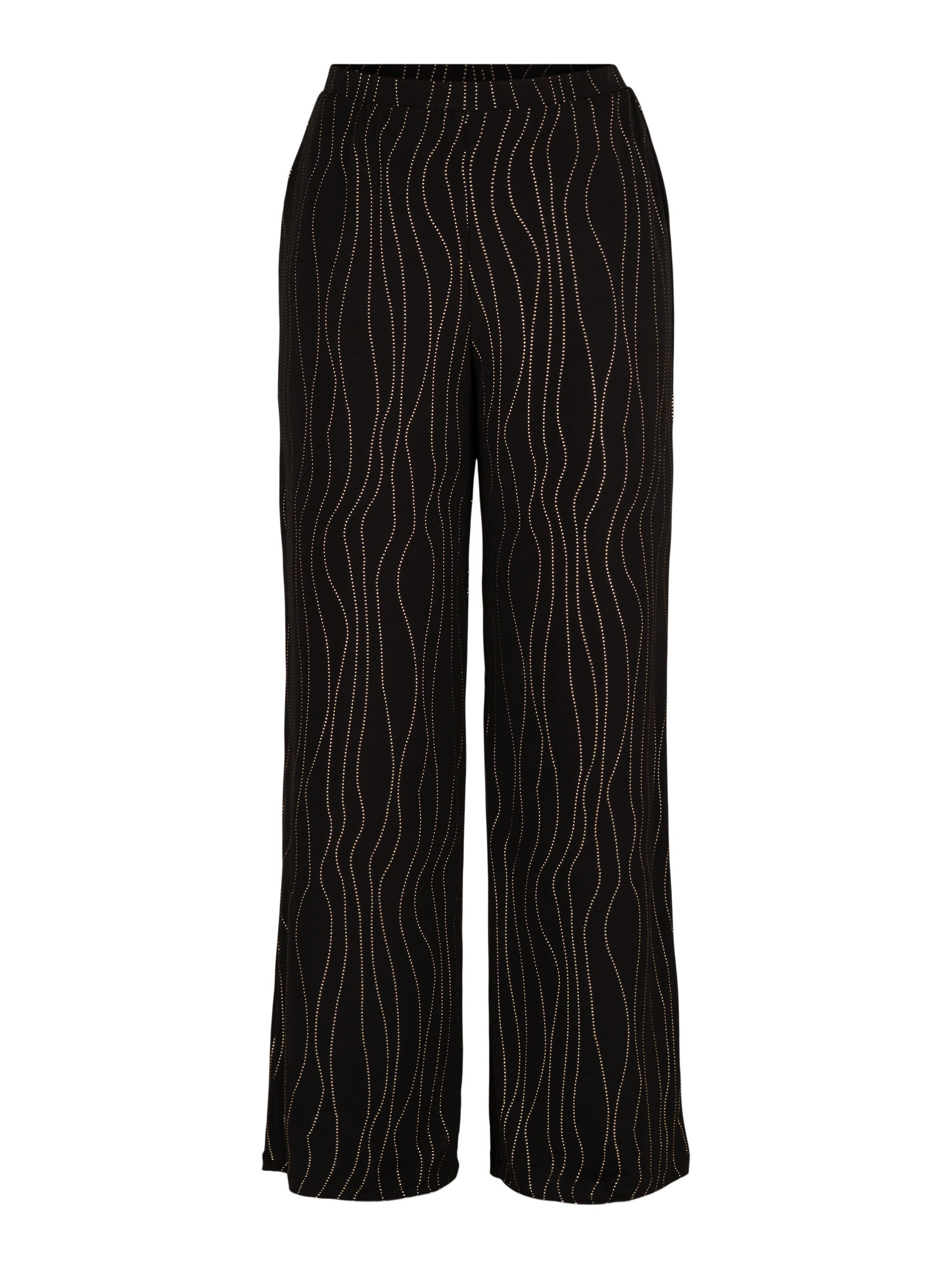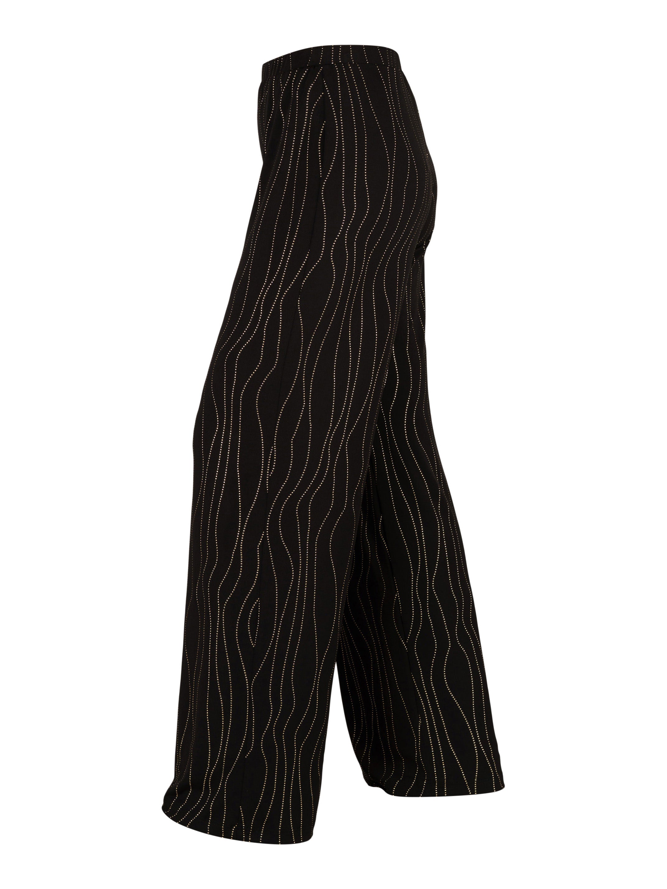 - Dekorerad med guldfärgade prickar i ett mönster på svart botten.