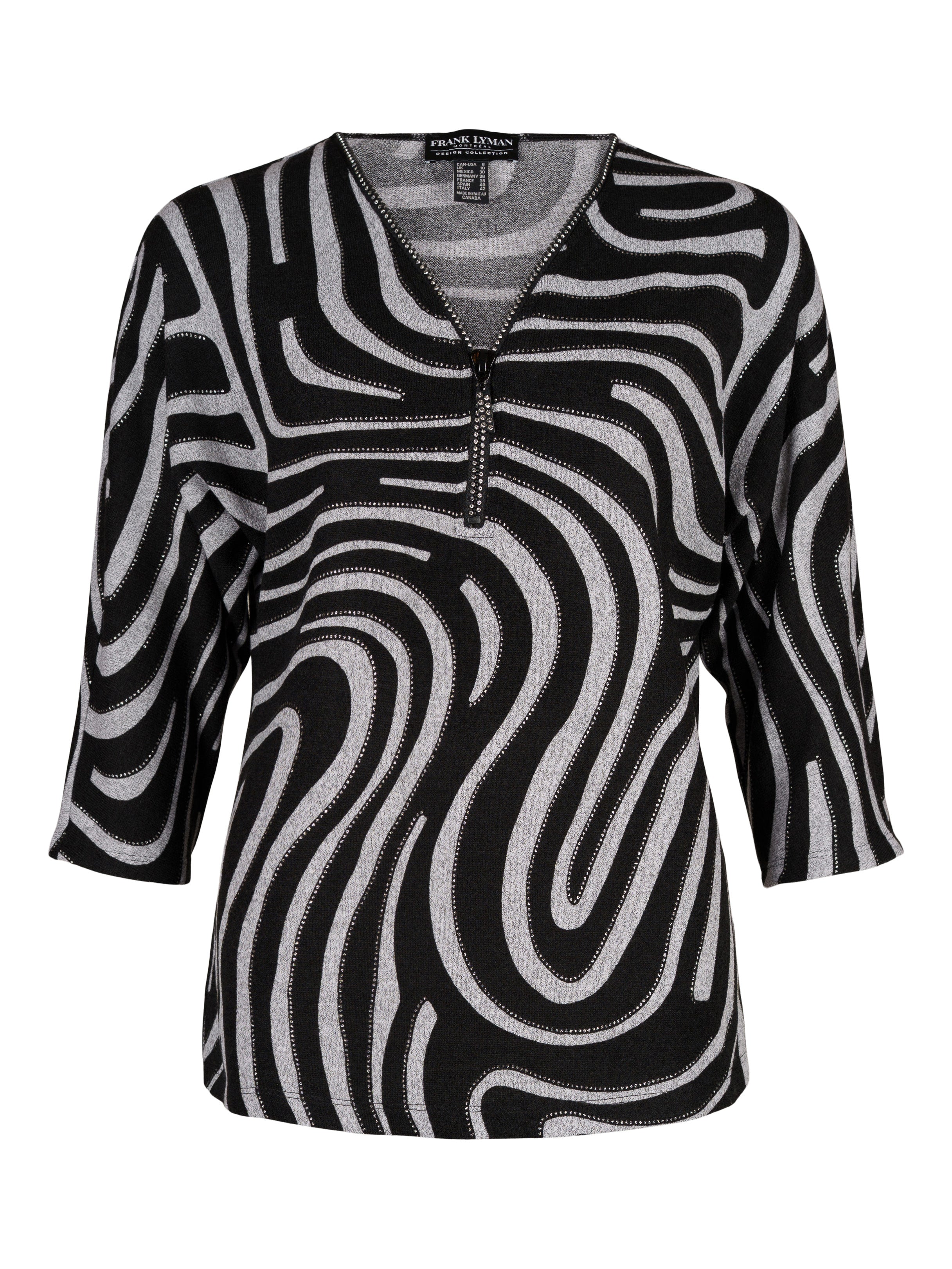 - Grå och svart mönstrad med metallictryck.