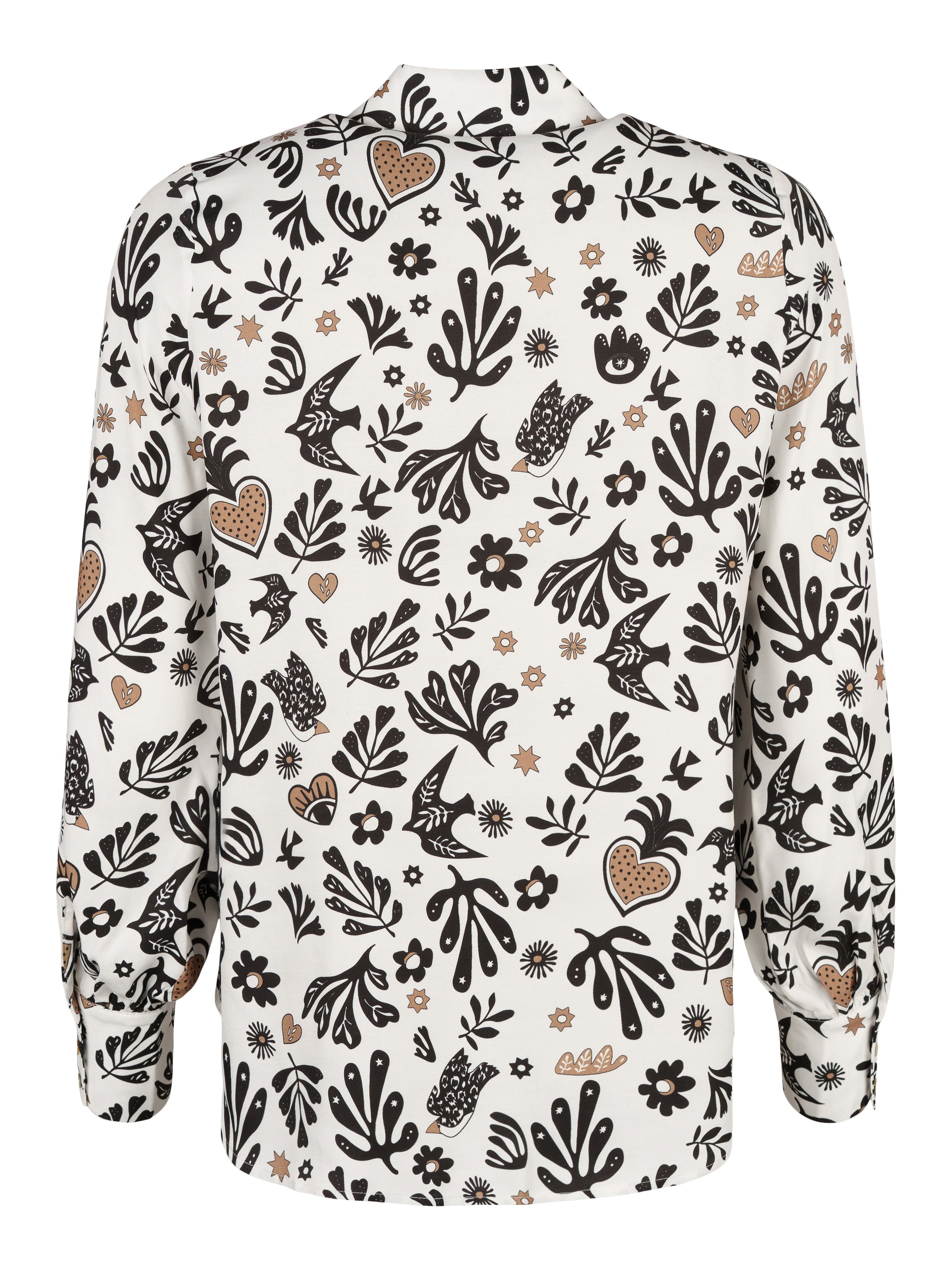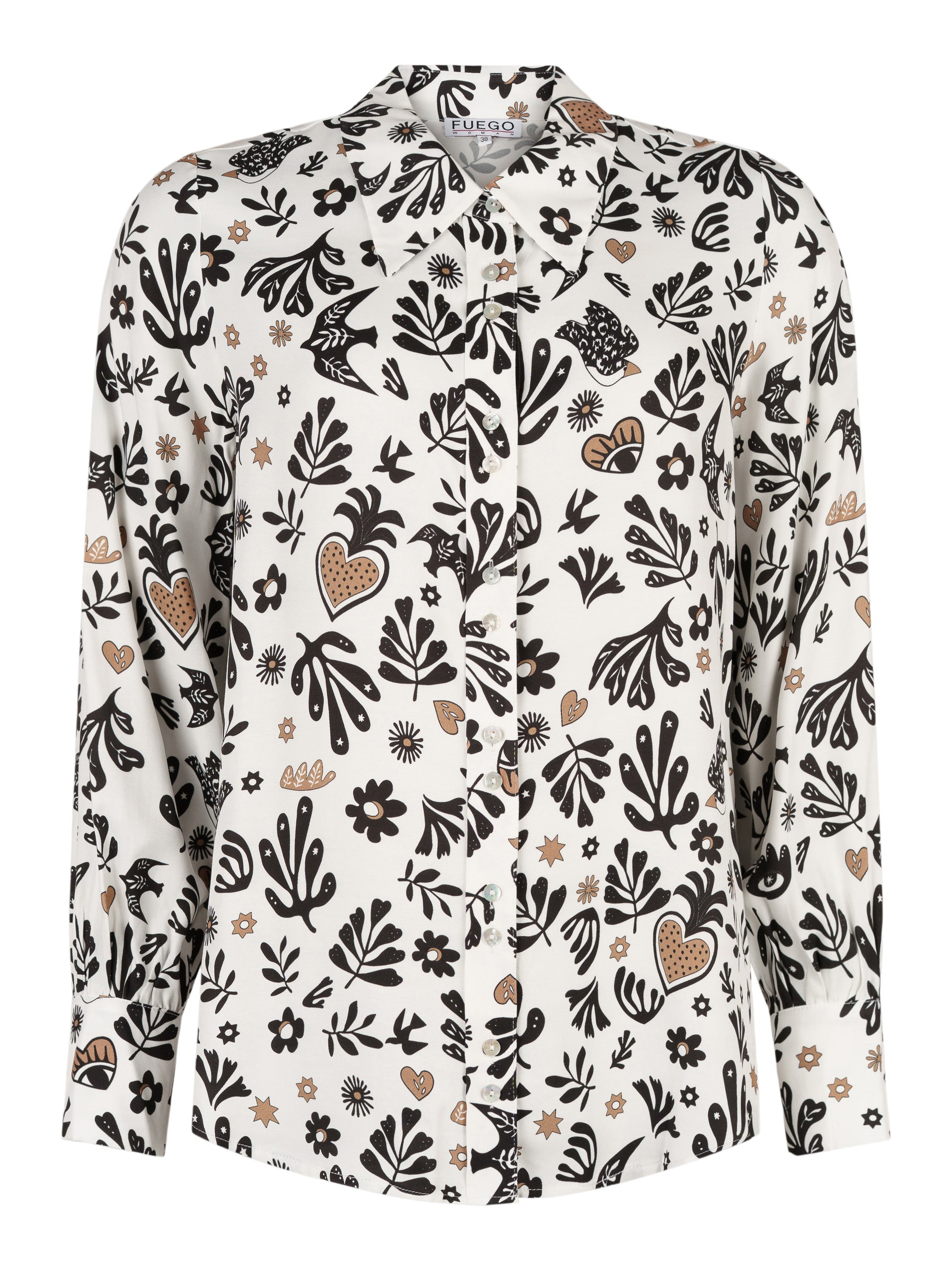 - Knäppning framtill med pärlemorknappar och krage med långa snibbar.