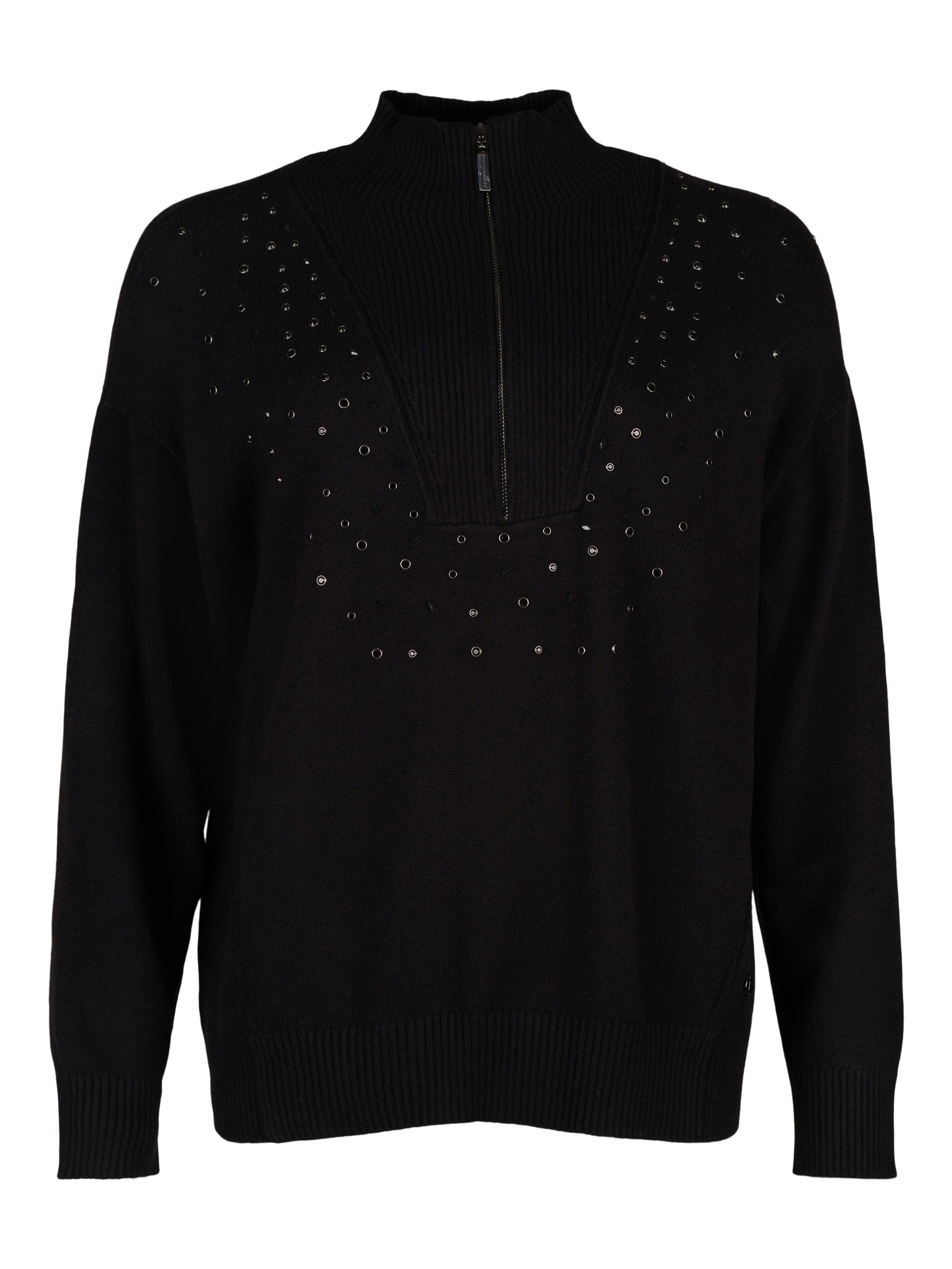 - Mönsterstickad tröja dekorerad med svarta strasstenar i olika former.