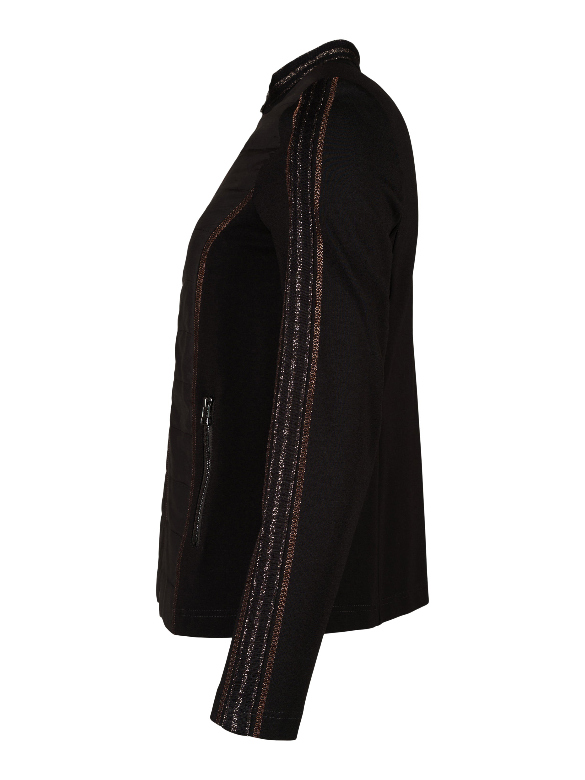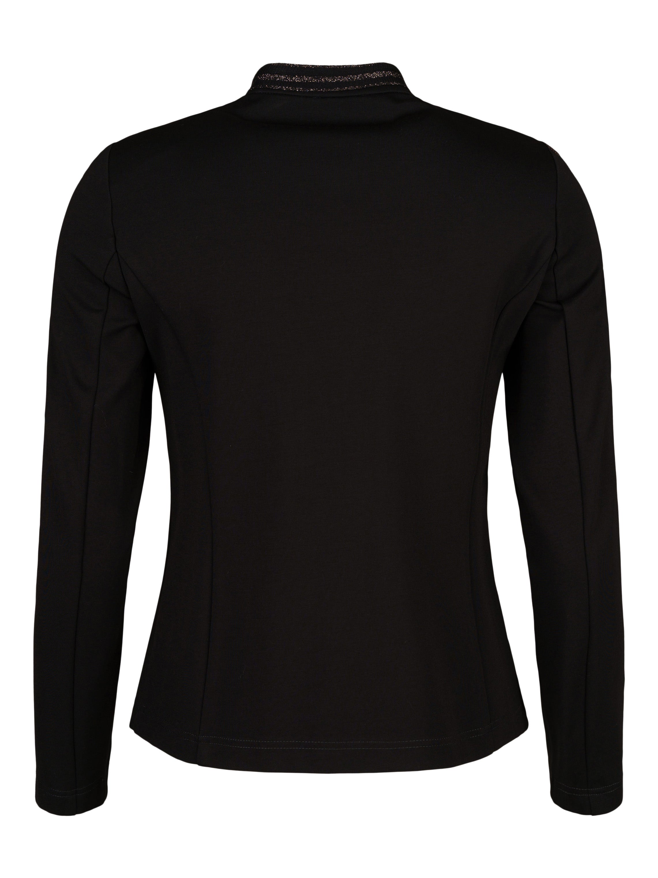 - Lång ärm med revärer med glittertråd längs ärmen.