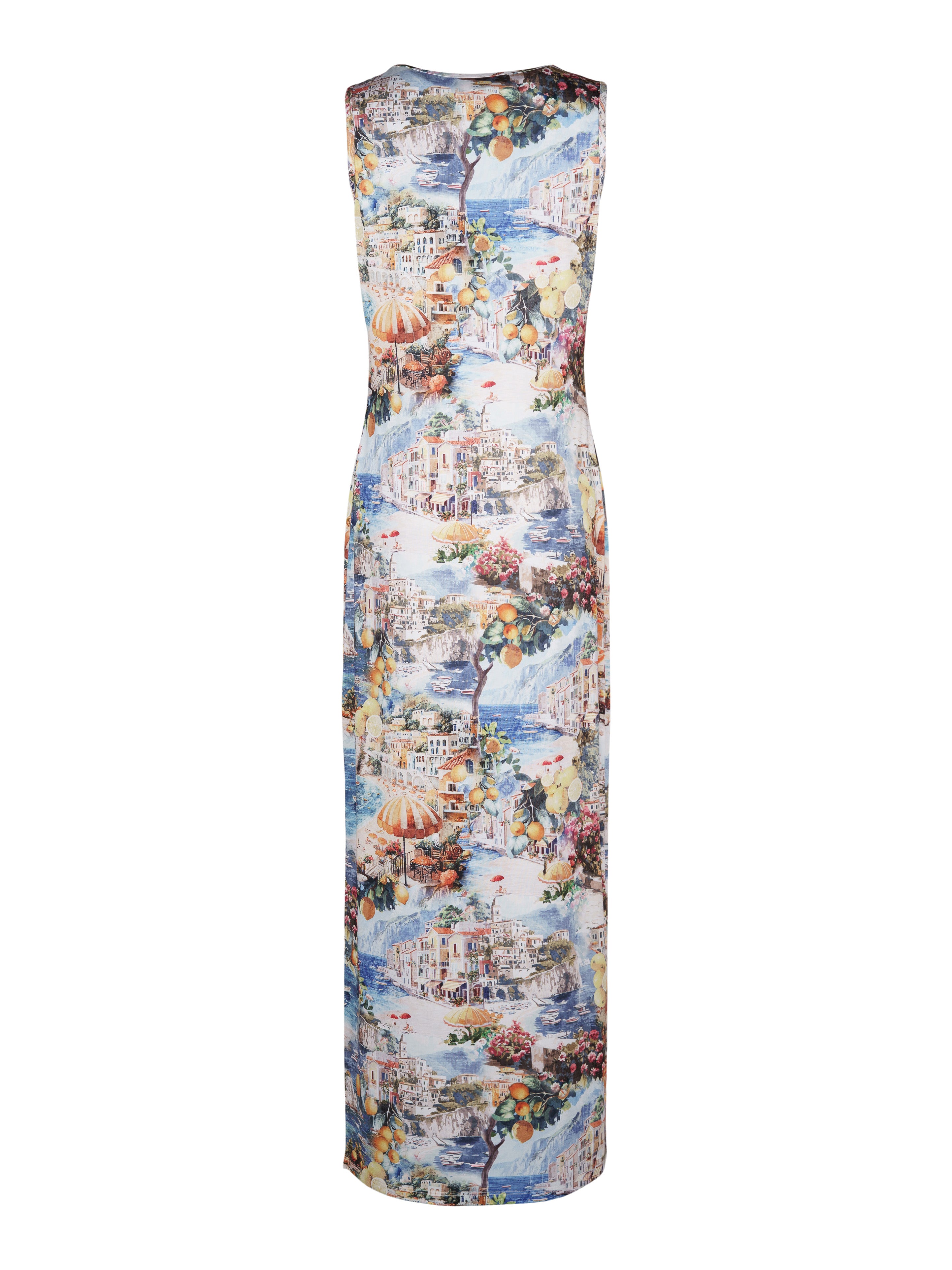 - Rund halsringning och ärmlös.