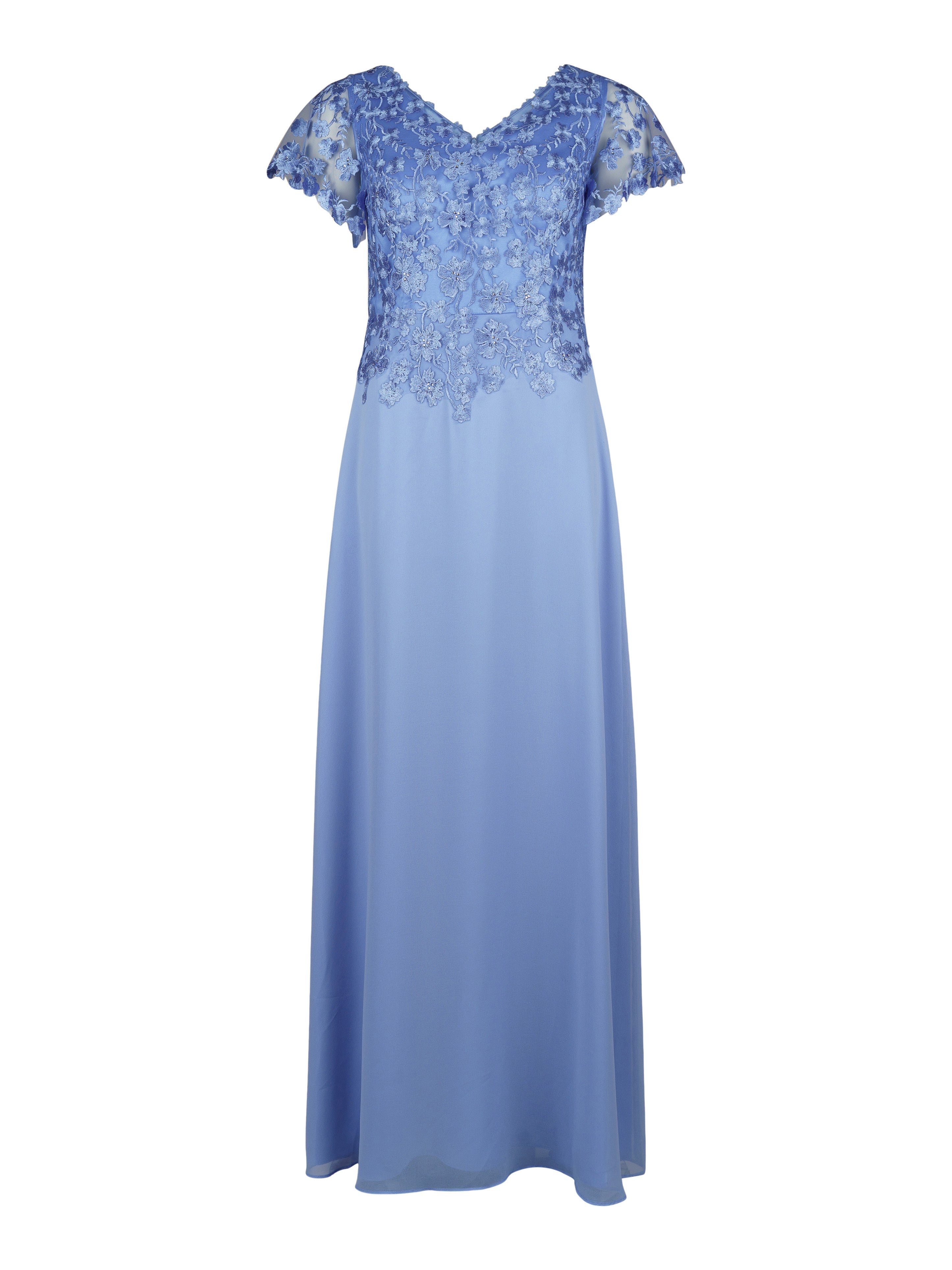 - Figurnära upptill som släpper från midjan med böljande chiffong.