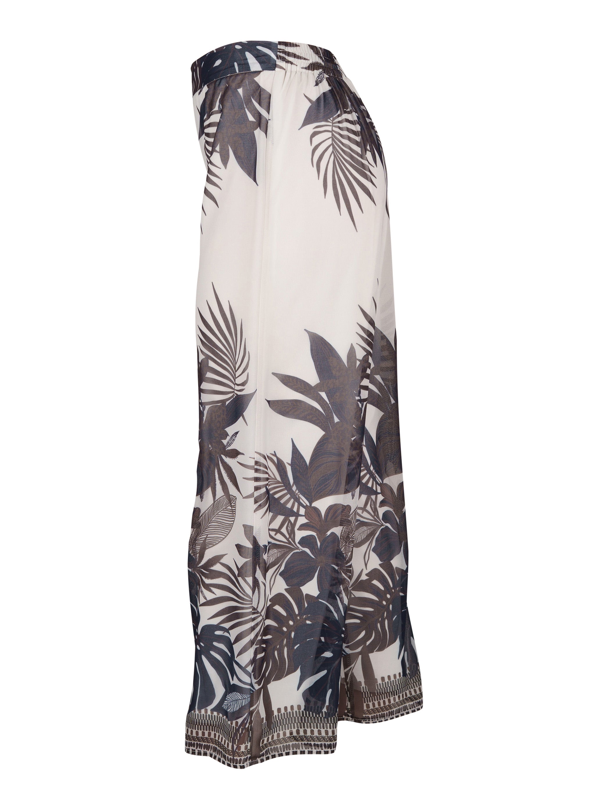 - Luftig mönstrad chiffong i blommigt mönster i brunt, blått och beiget.