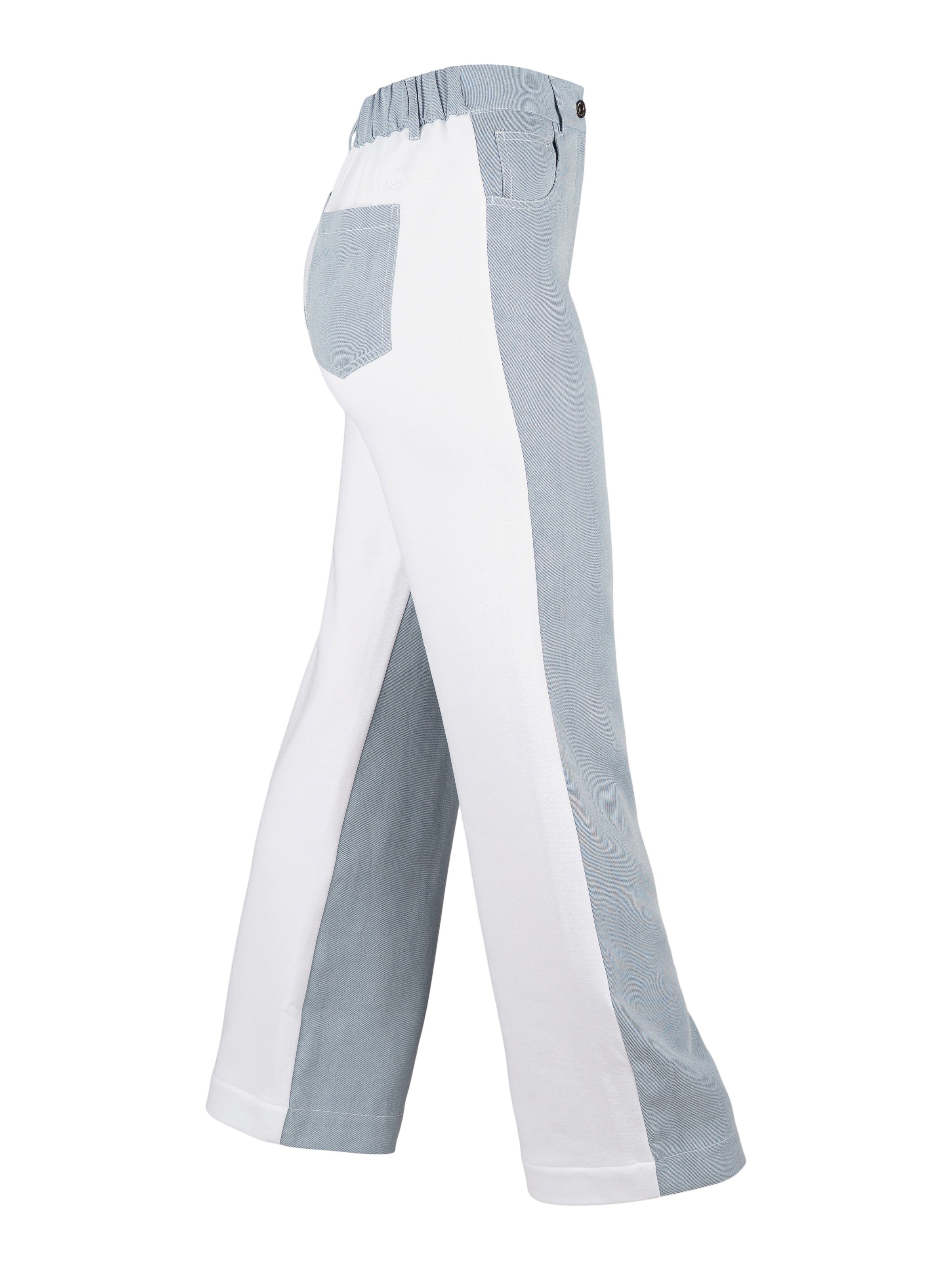 - Mjuk och tunn denim i blått tillsammans med vitt bomulls tyg.