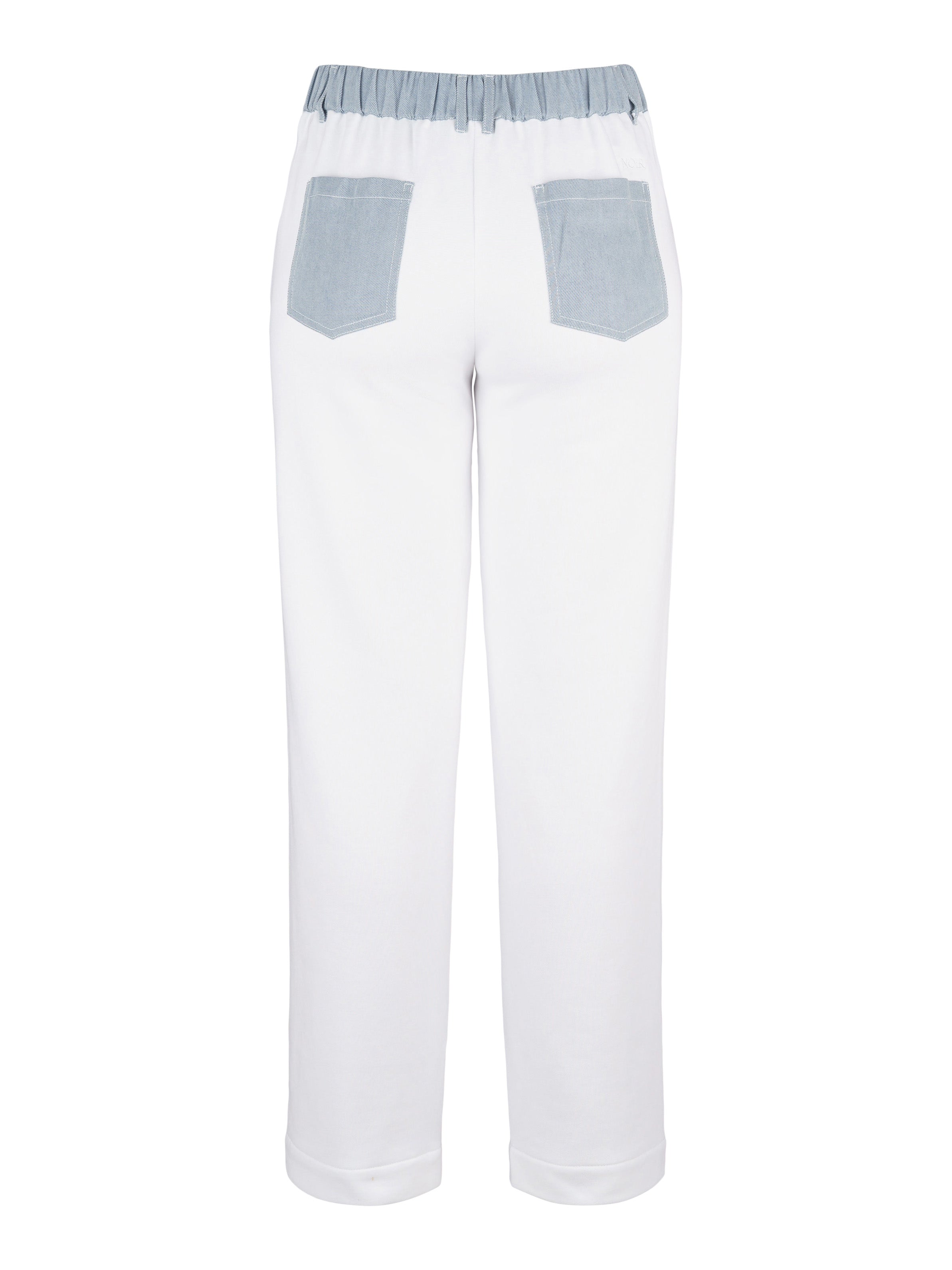 - Elastisk resår i linningen och två fickor baktill.