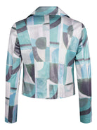- Mönstrad i turkosa och gråa toner.