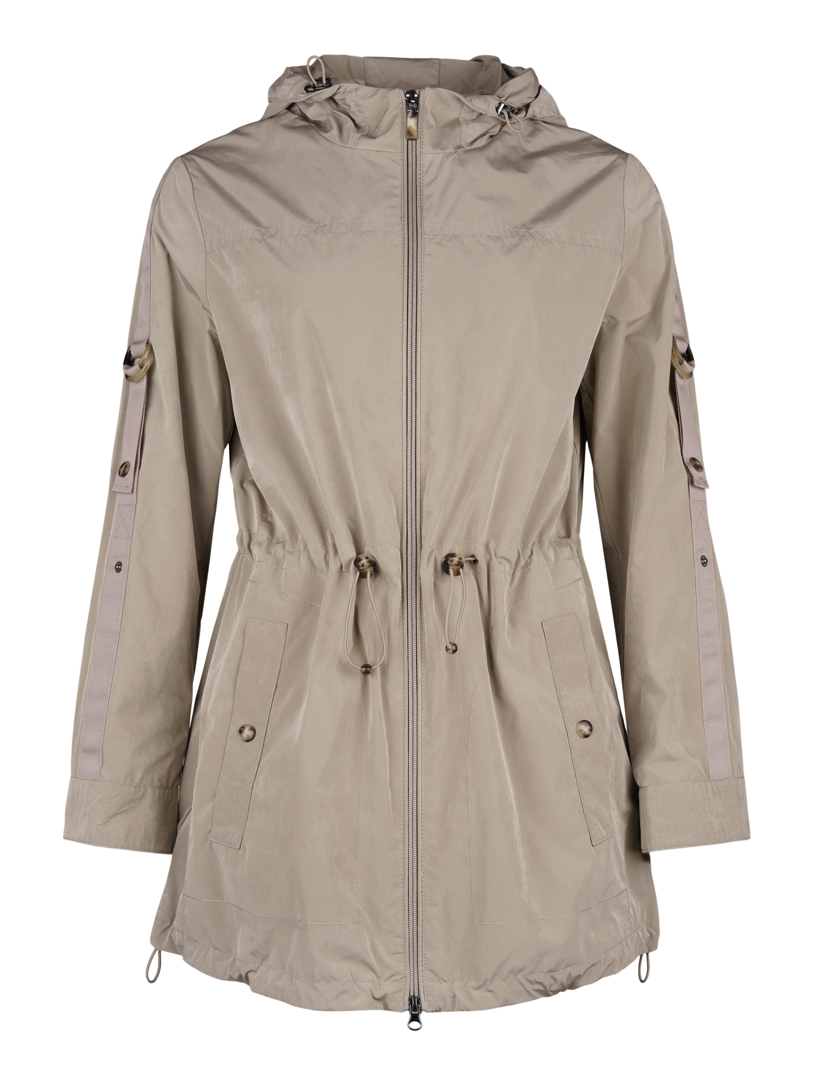 - Rak jacka i medellång modell med sömnadsdetaljer.