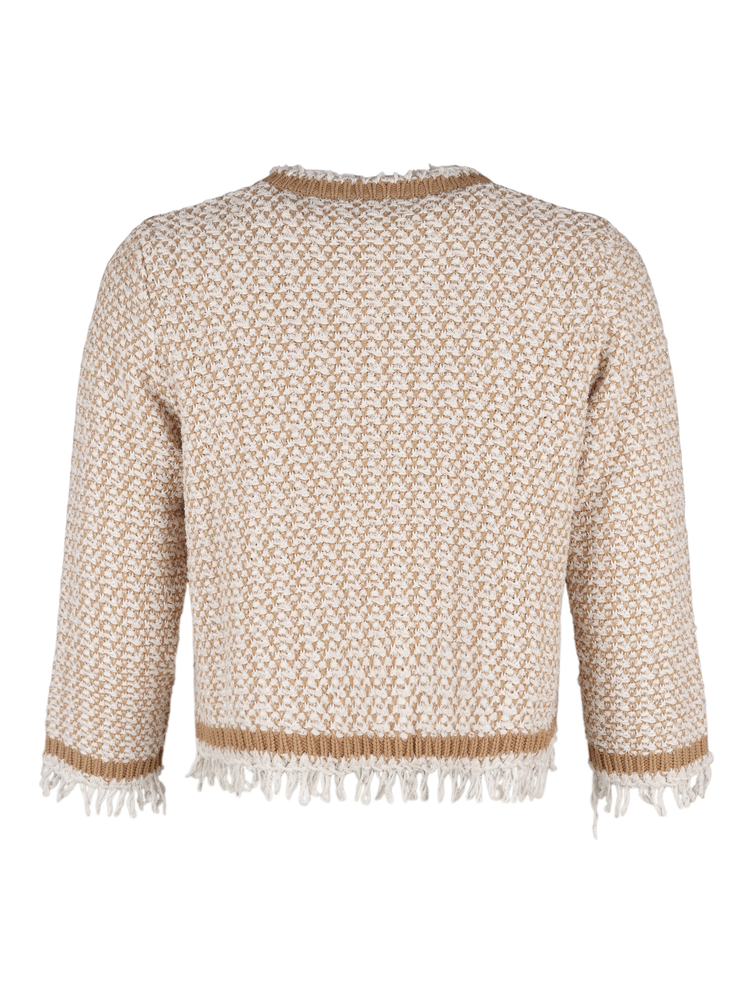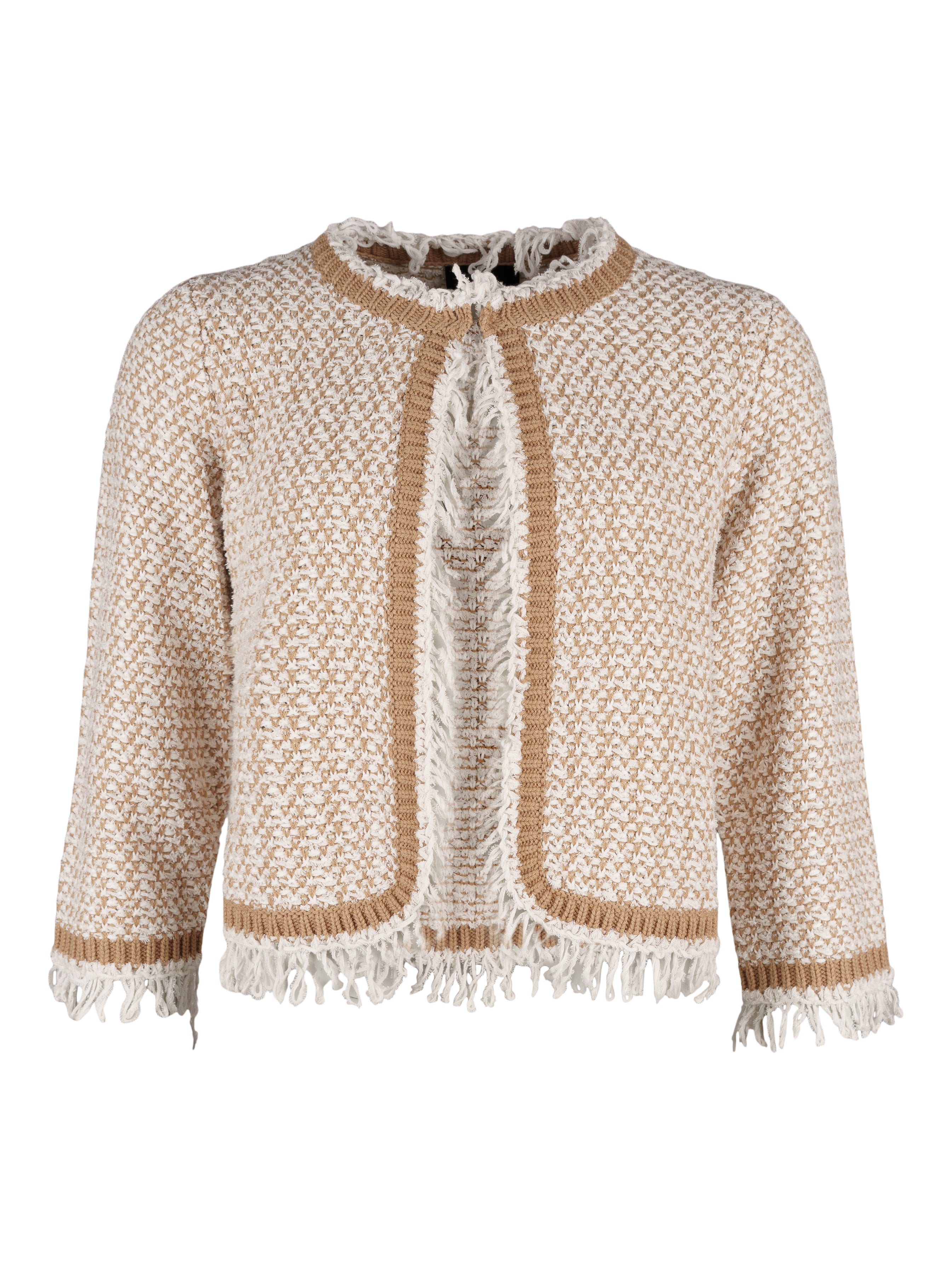 - Stickad jacka i vita och beiga toner.