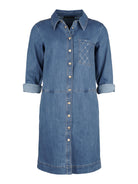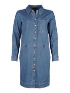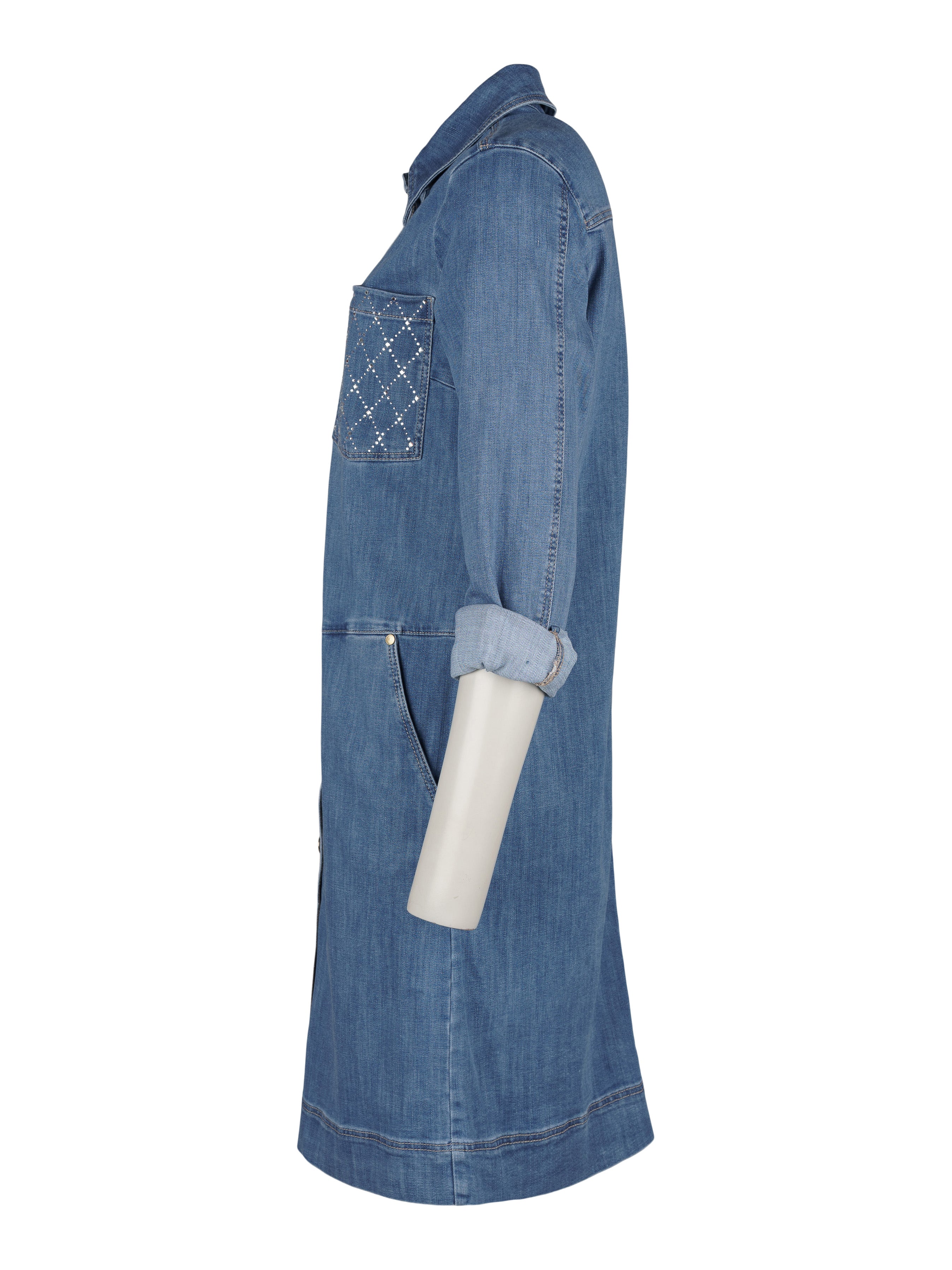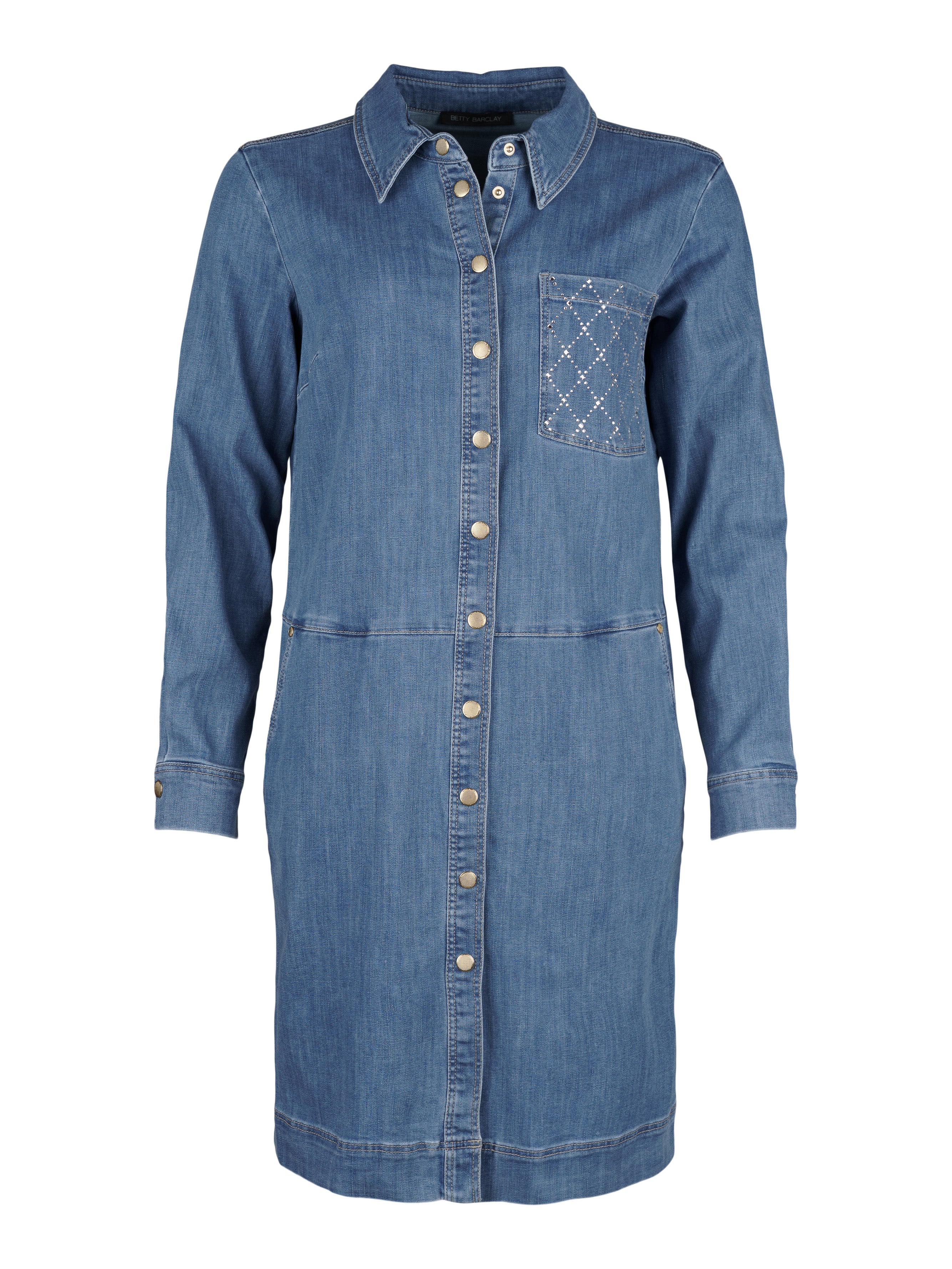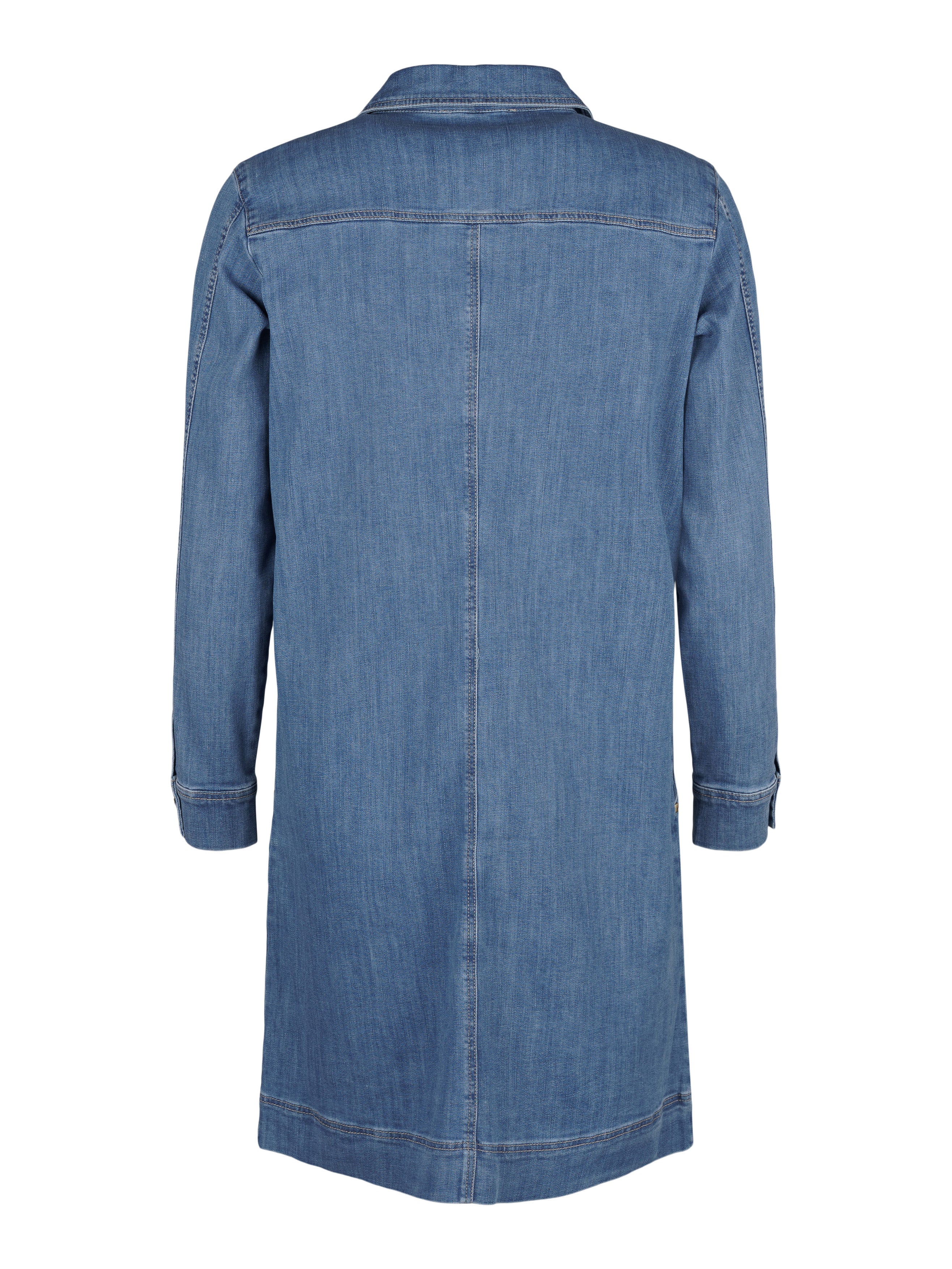 - Följsam denim som stängs med guldfärgade tryckknappar framtill.