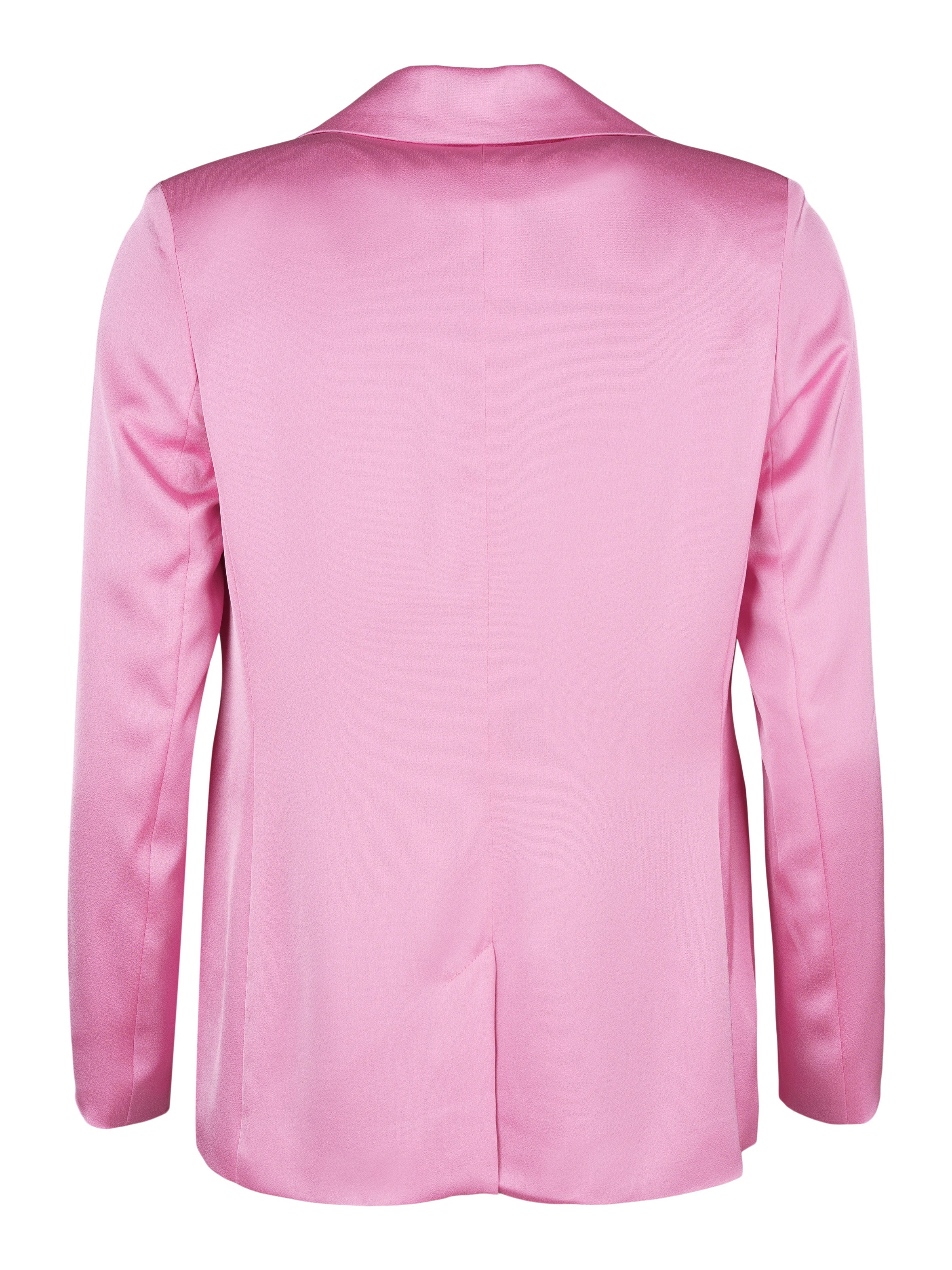 - Kavaj i bubbelgums-rosa glansigt tyg.
