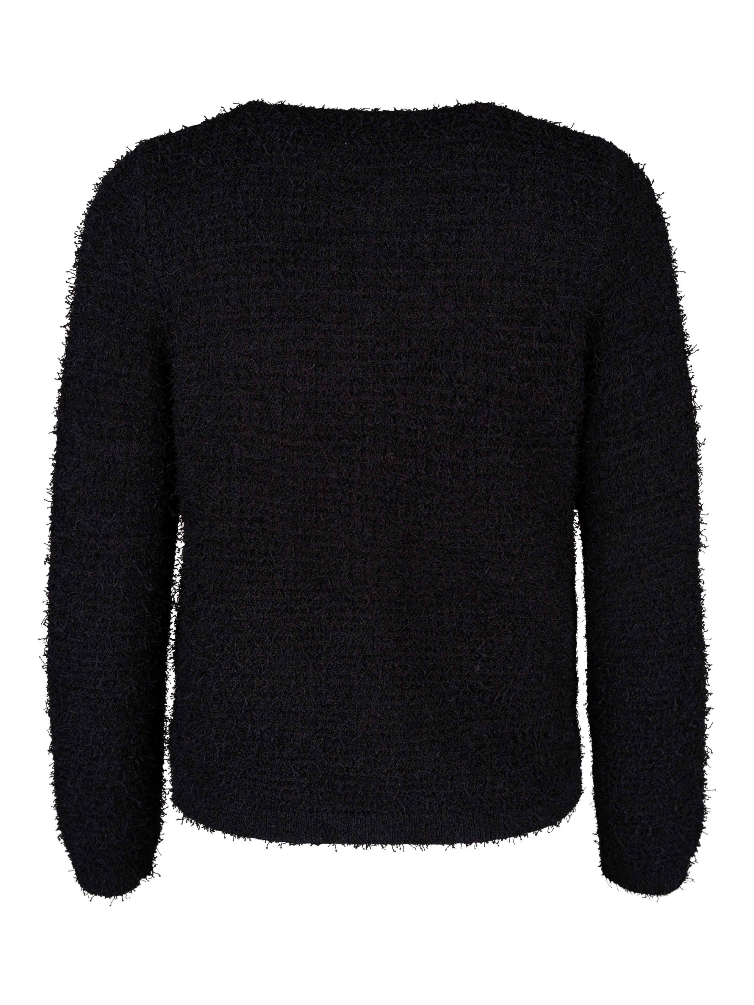 - Stickad med fluffigt garn.