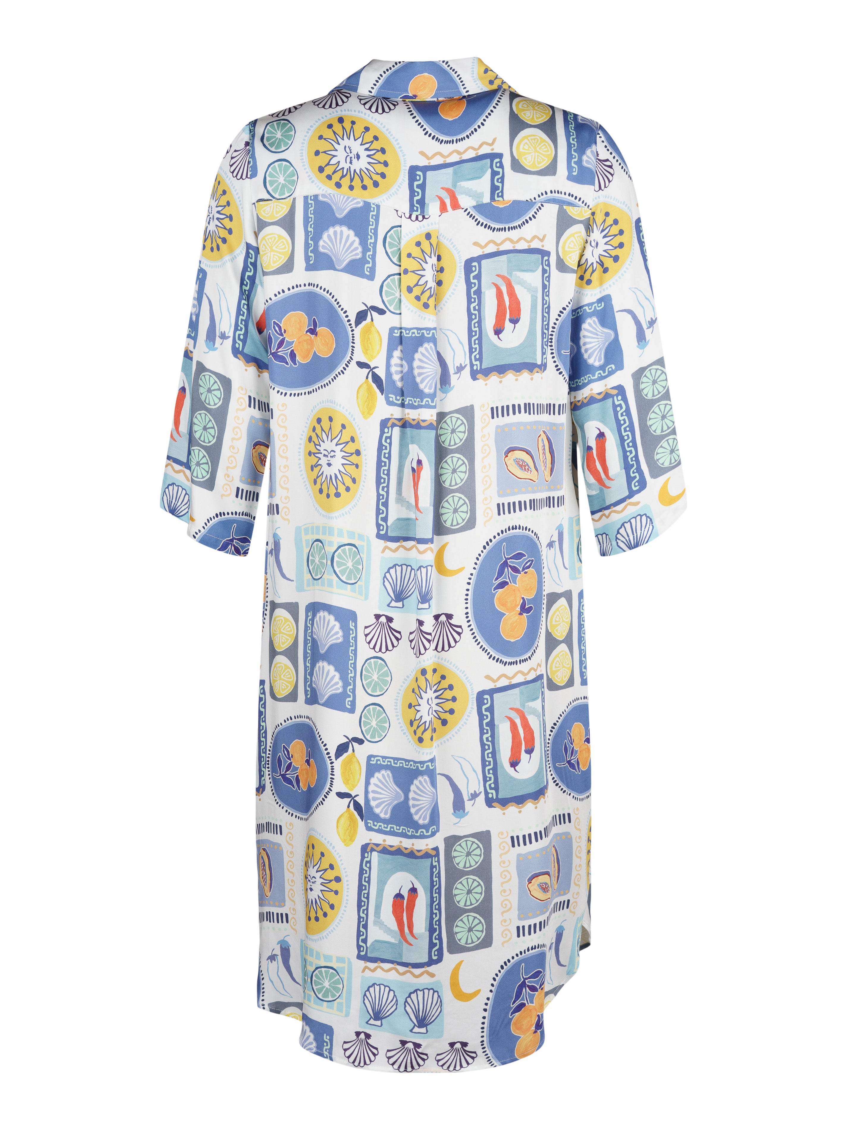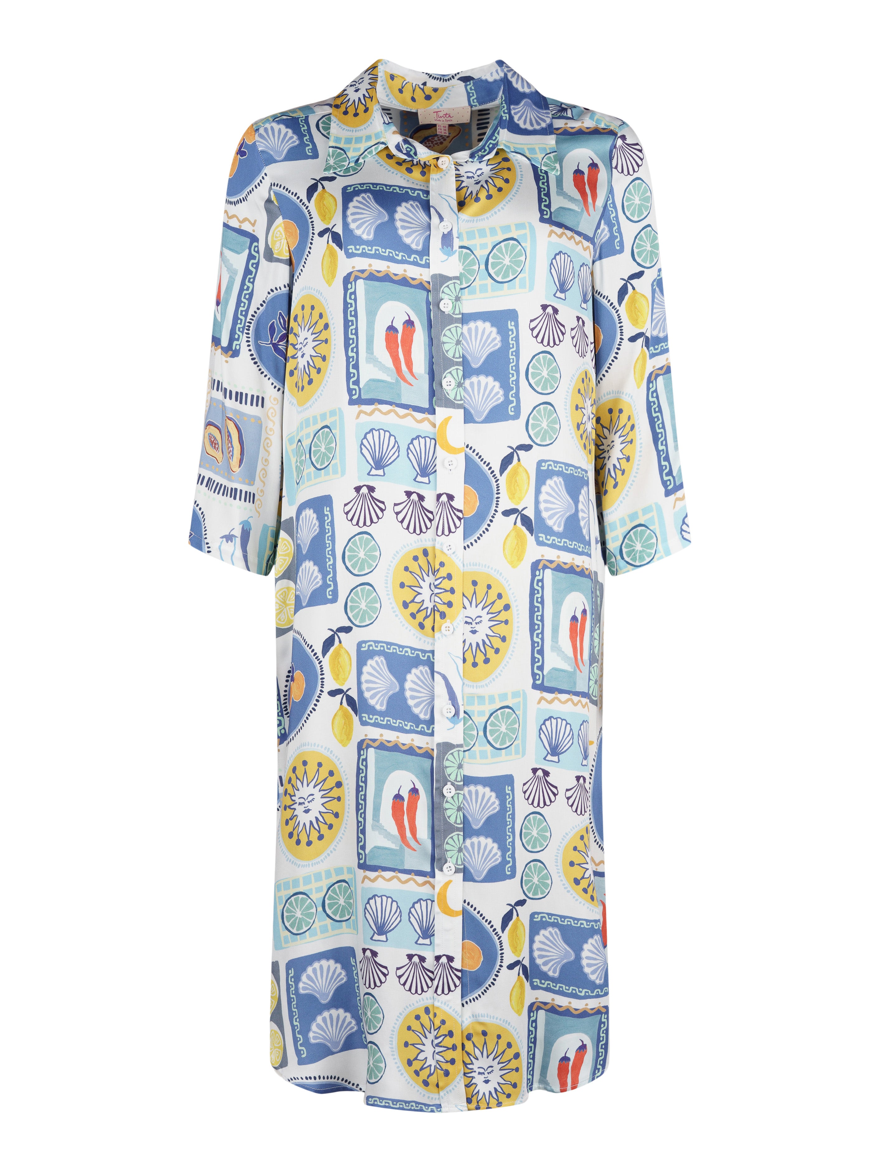 - Skjortkrage och 3/4 ärm.