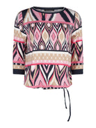 - Mönstrad topp i rosa, beiga och mörkblå toner