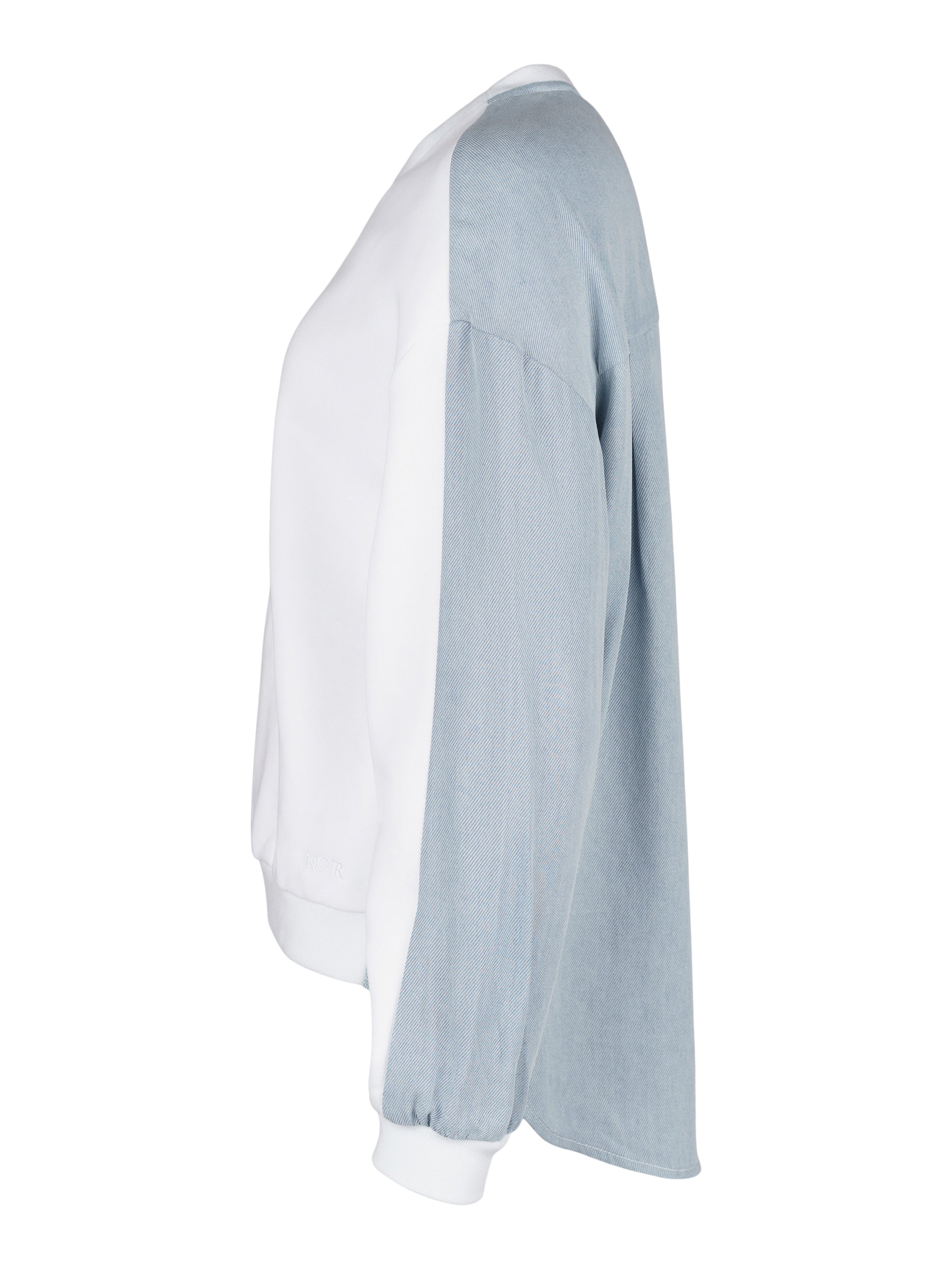 - Vit framtill och tunn och mjuk denim i blått baktill.