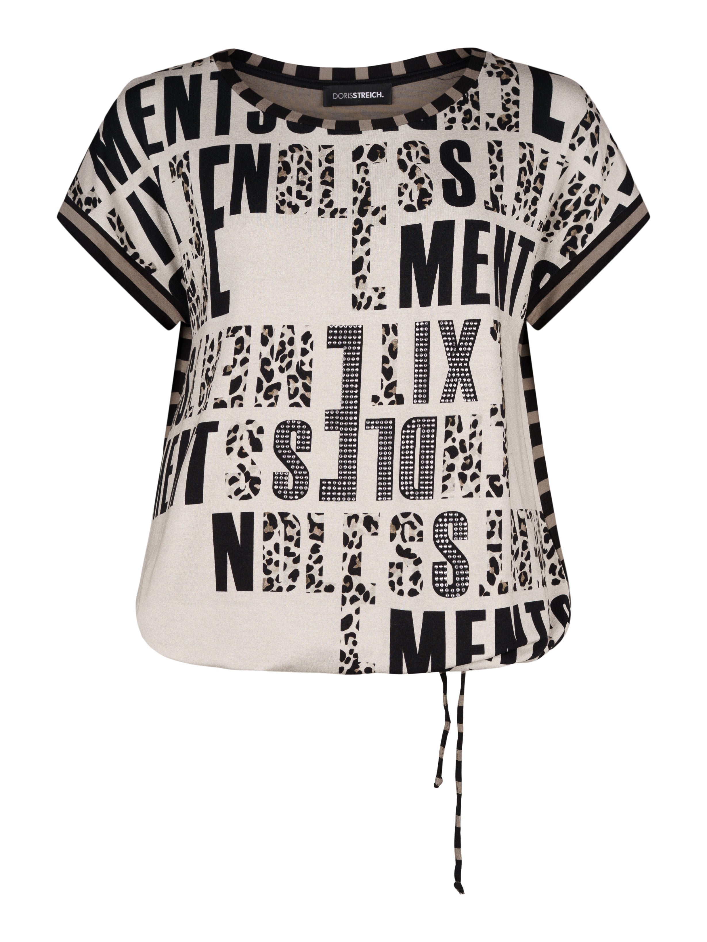 - Djurmönstrad tunika dekorerad med strasstenar.