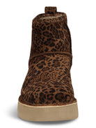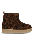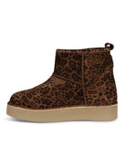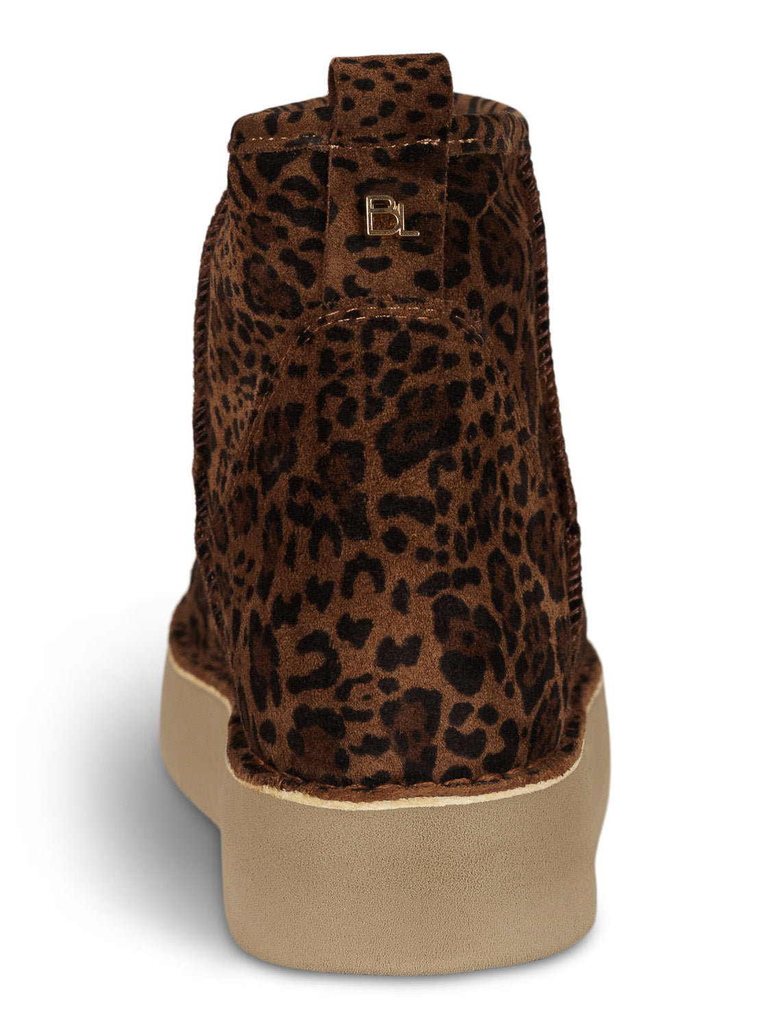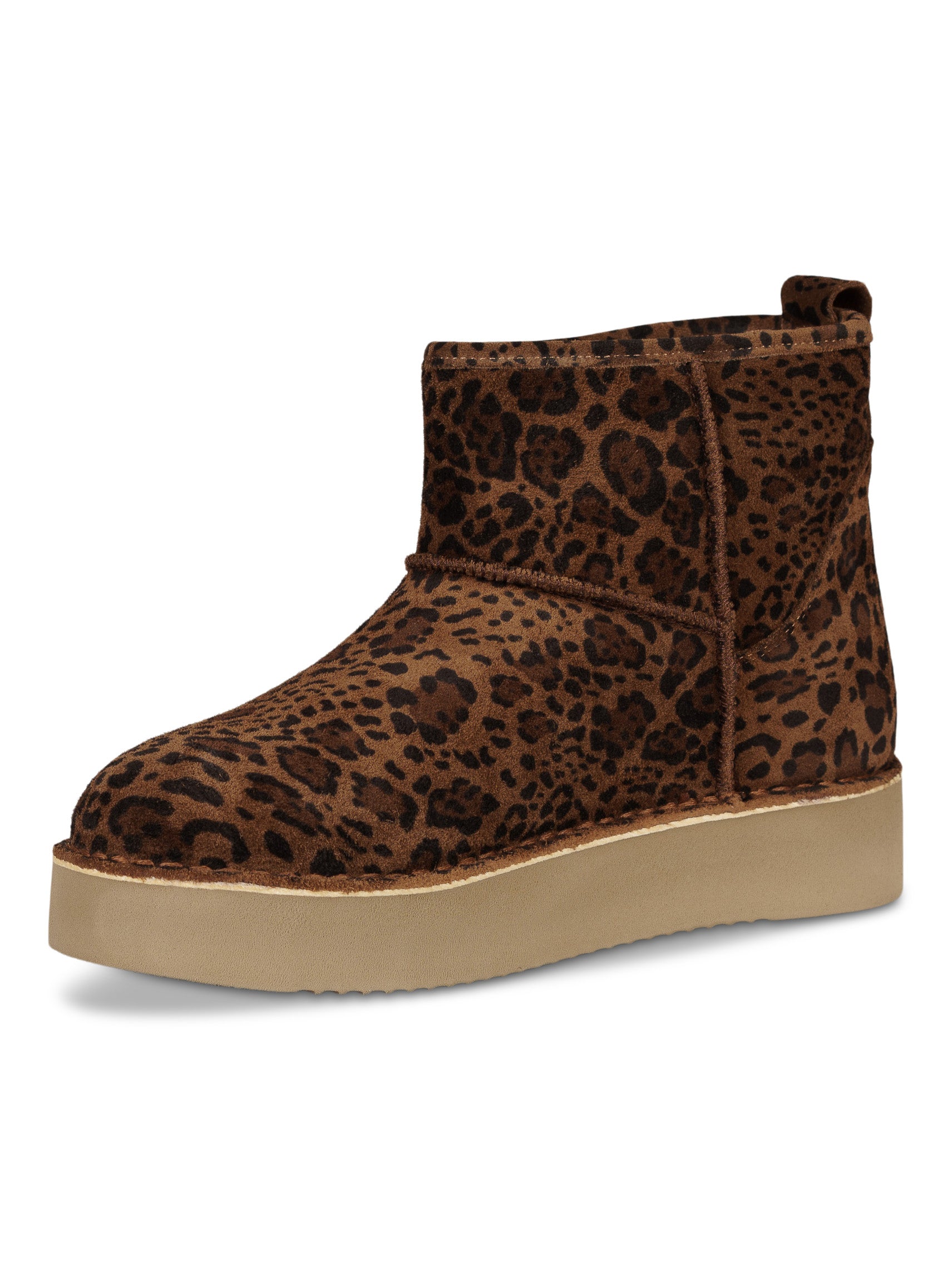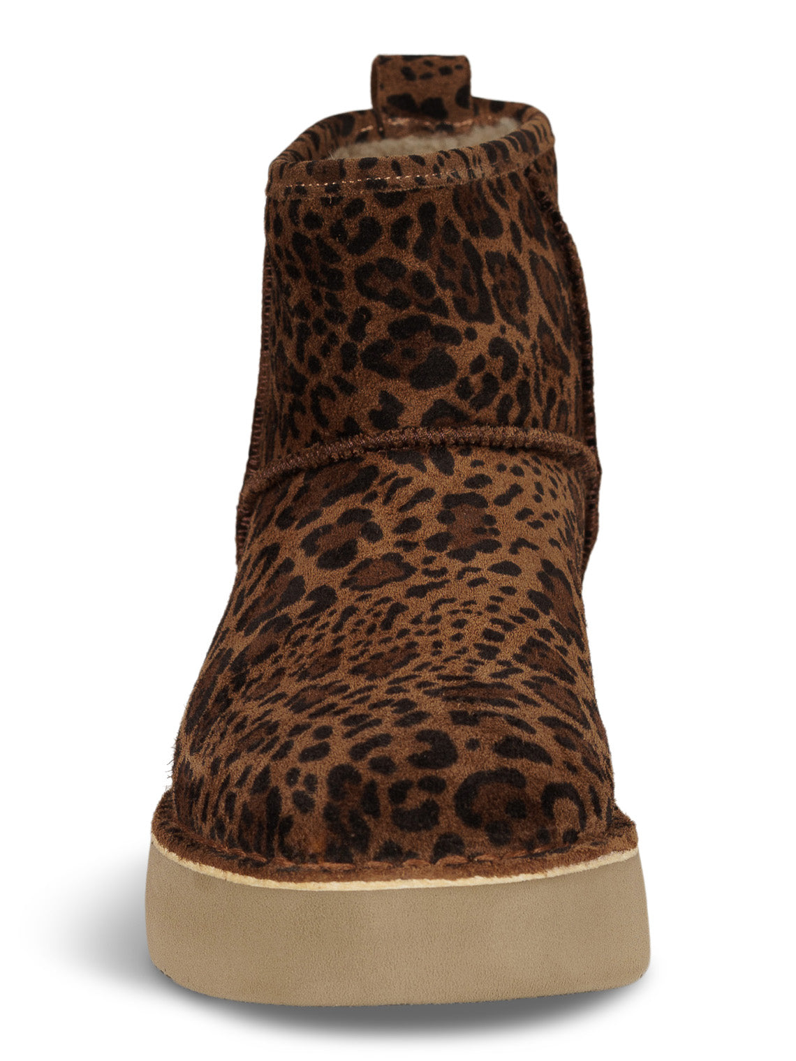 - Djurmönstrad mocka med sömnadsdetaljer.