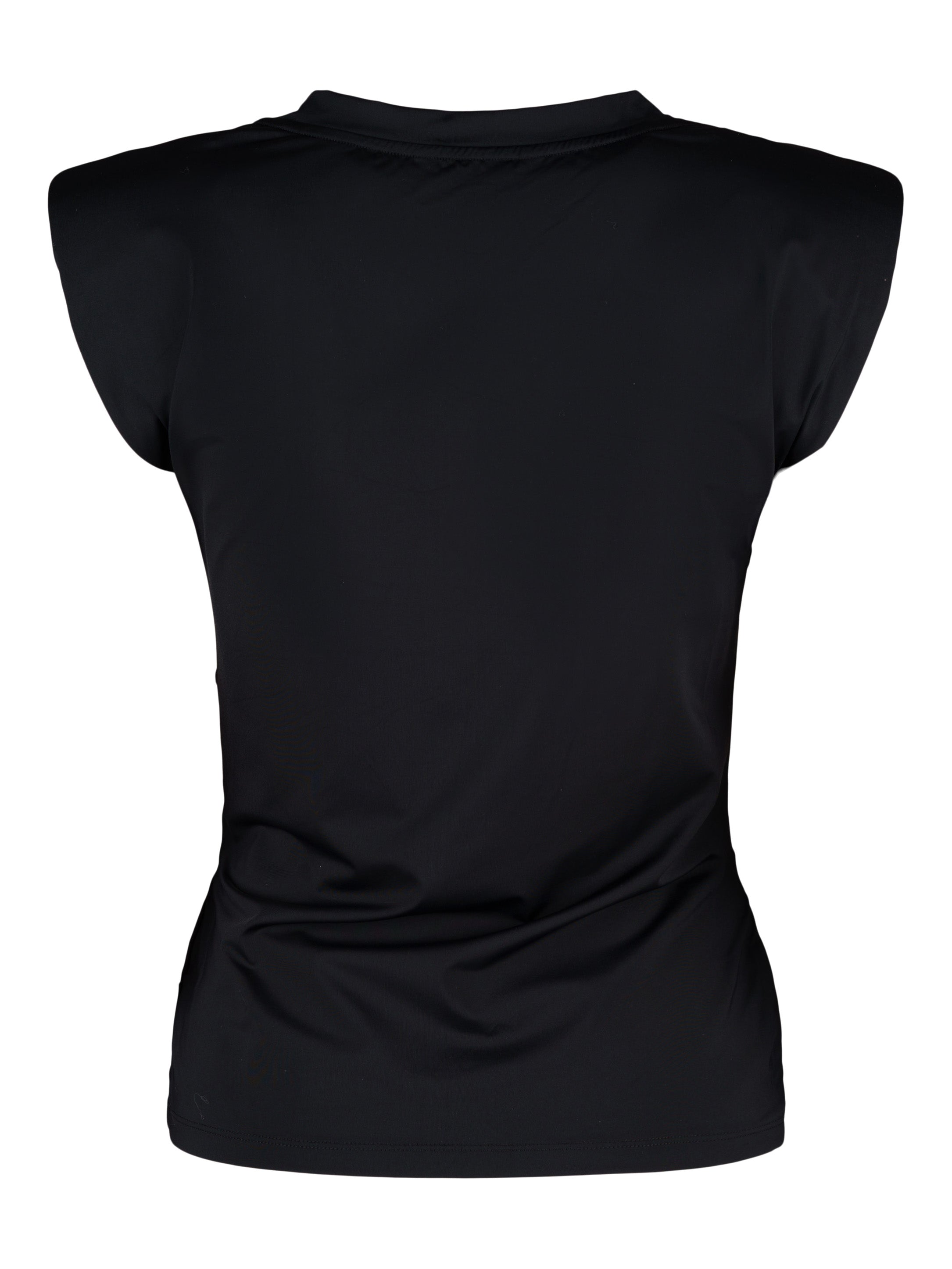 - Draperad topp med axelvaddar och motveck.