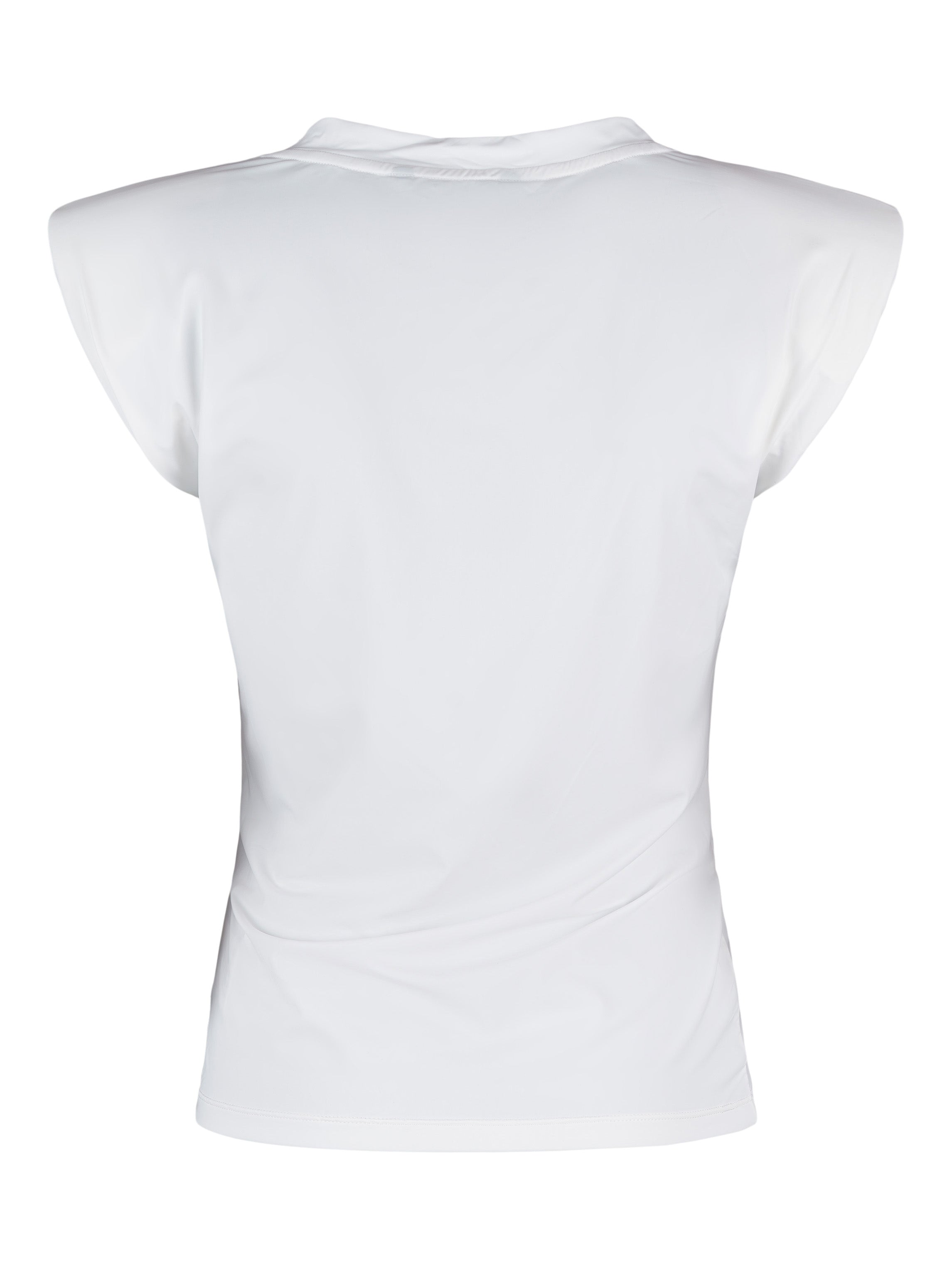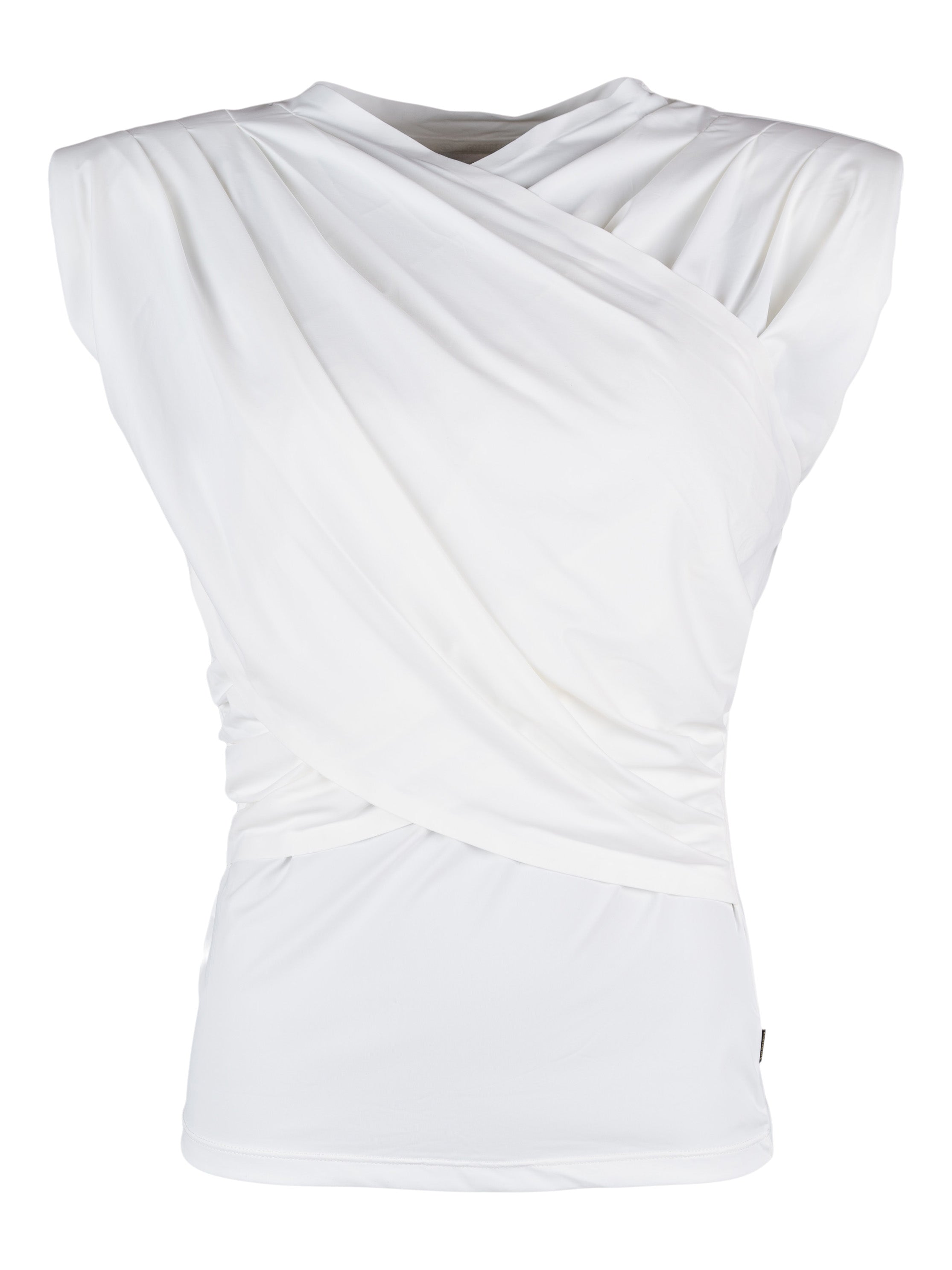 - Draperad topp med axelvaddar och motveck.
