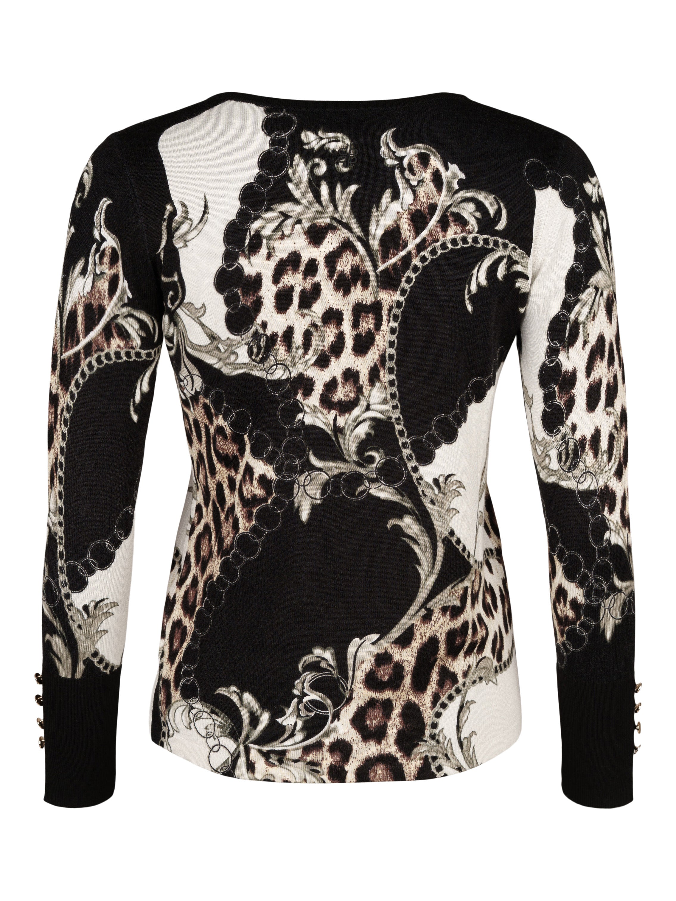 - Lång ärm dekorerad med guldfärgade knappar på ärmslut.