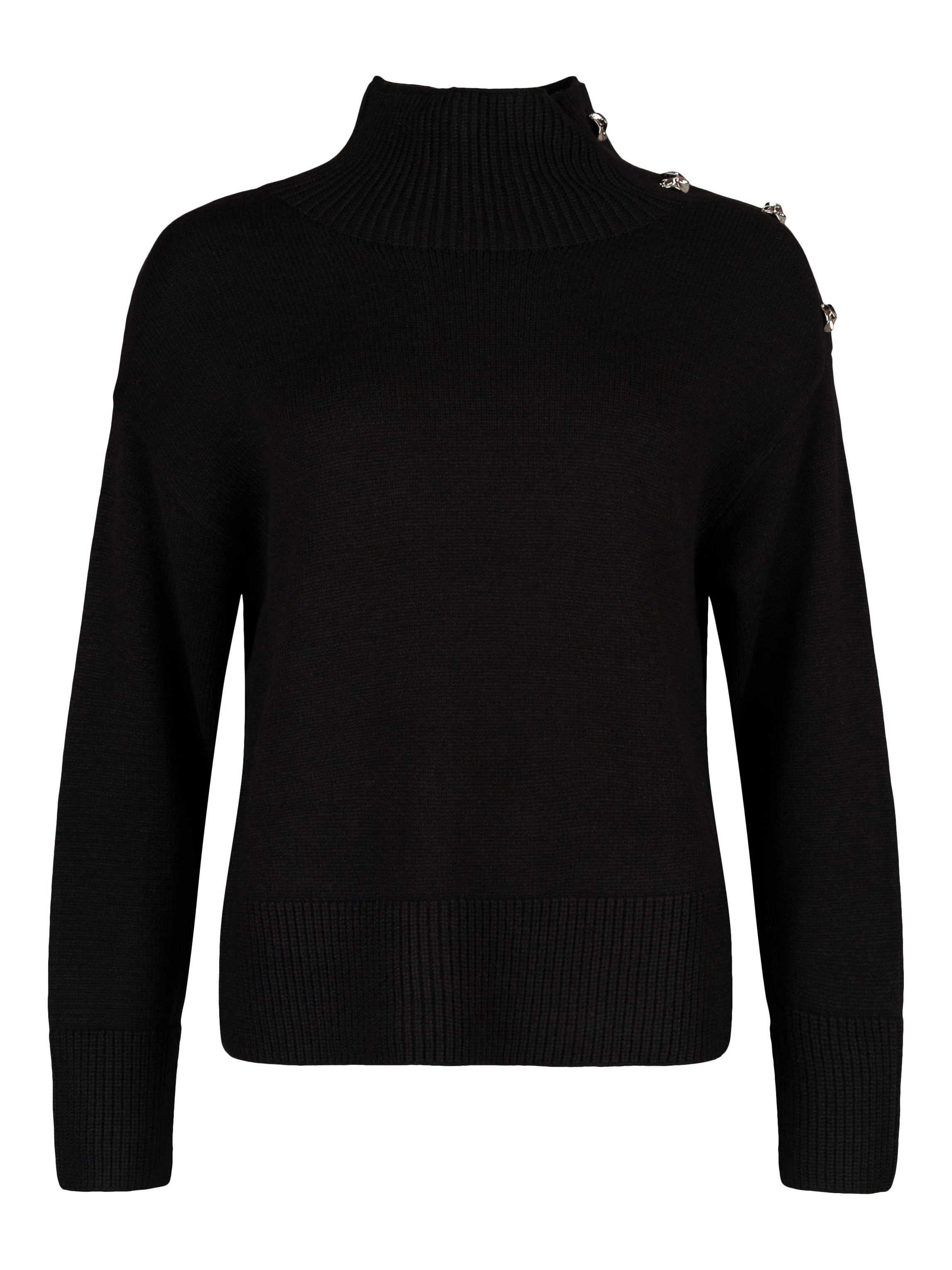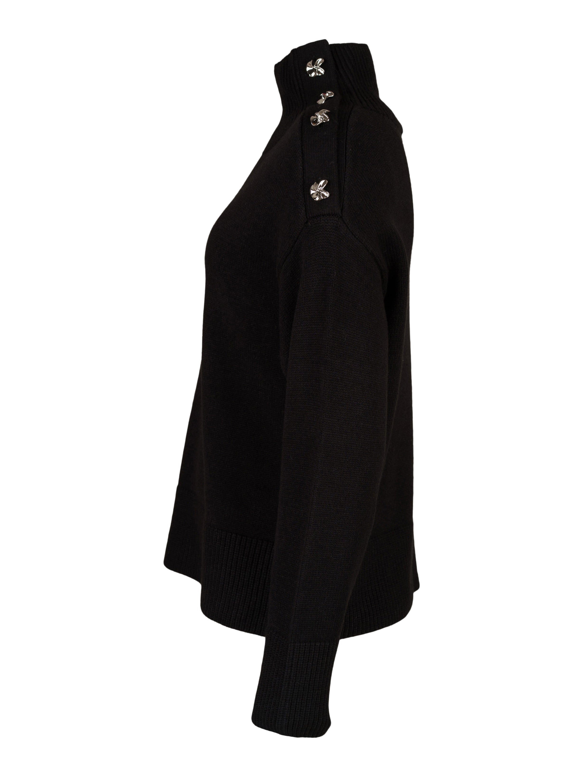- Dekorerad med silverfärgade metallknappar vid ena axeln.