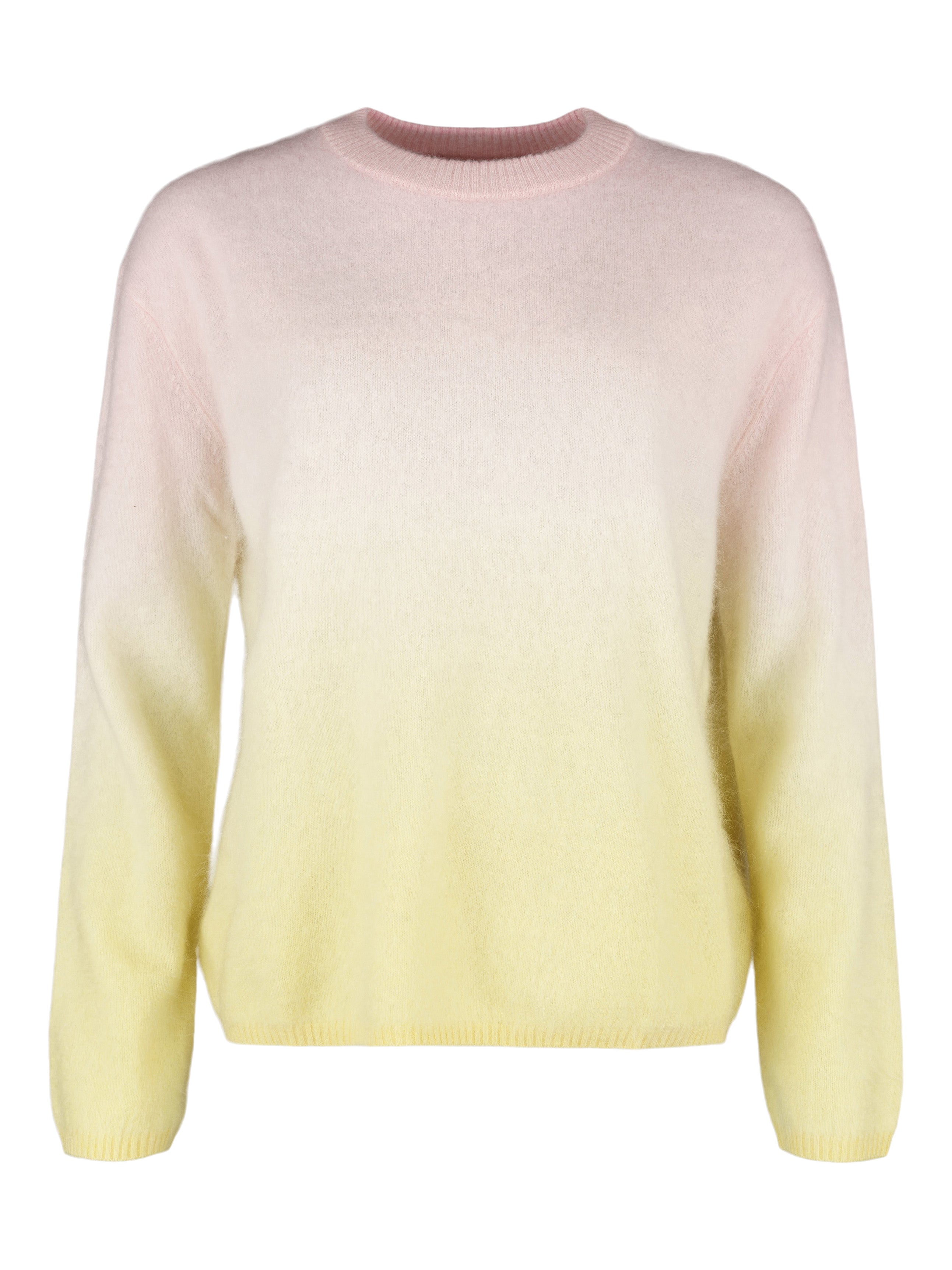- Finstickad tröja i övertonade färger i rosa och gult.