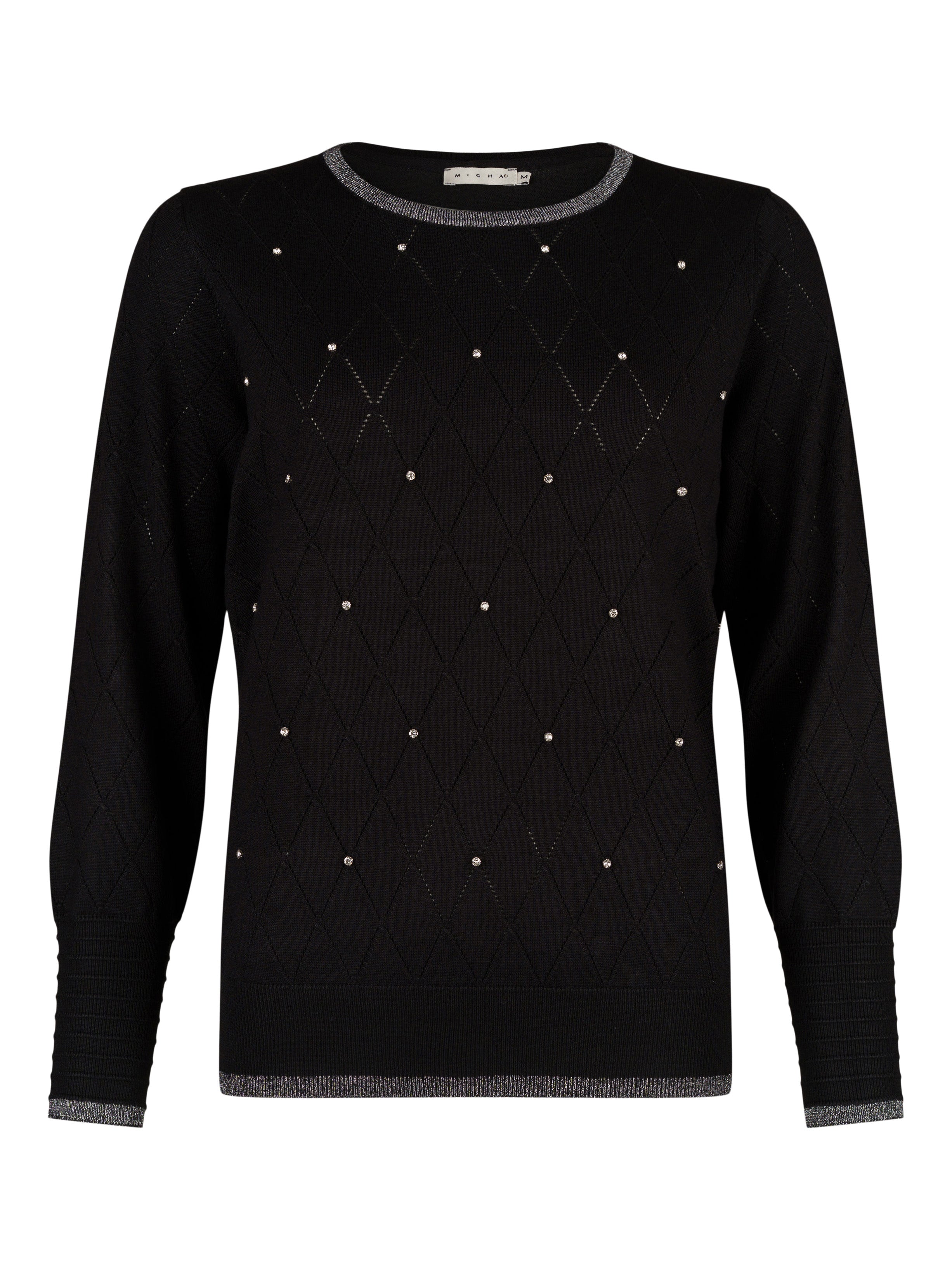 - Mönsterstickad tröja, dekorerad med strasstenar.