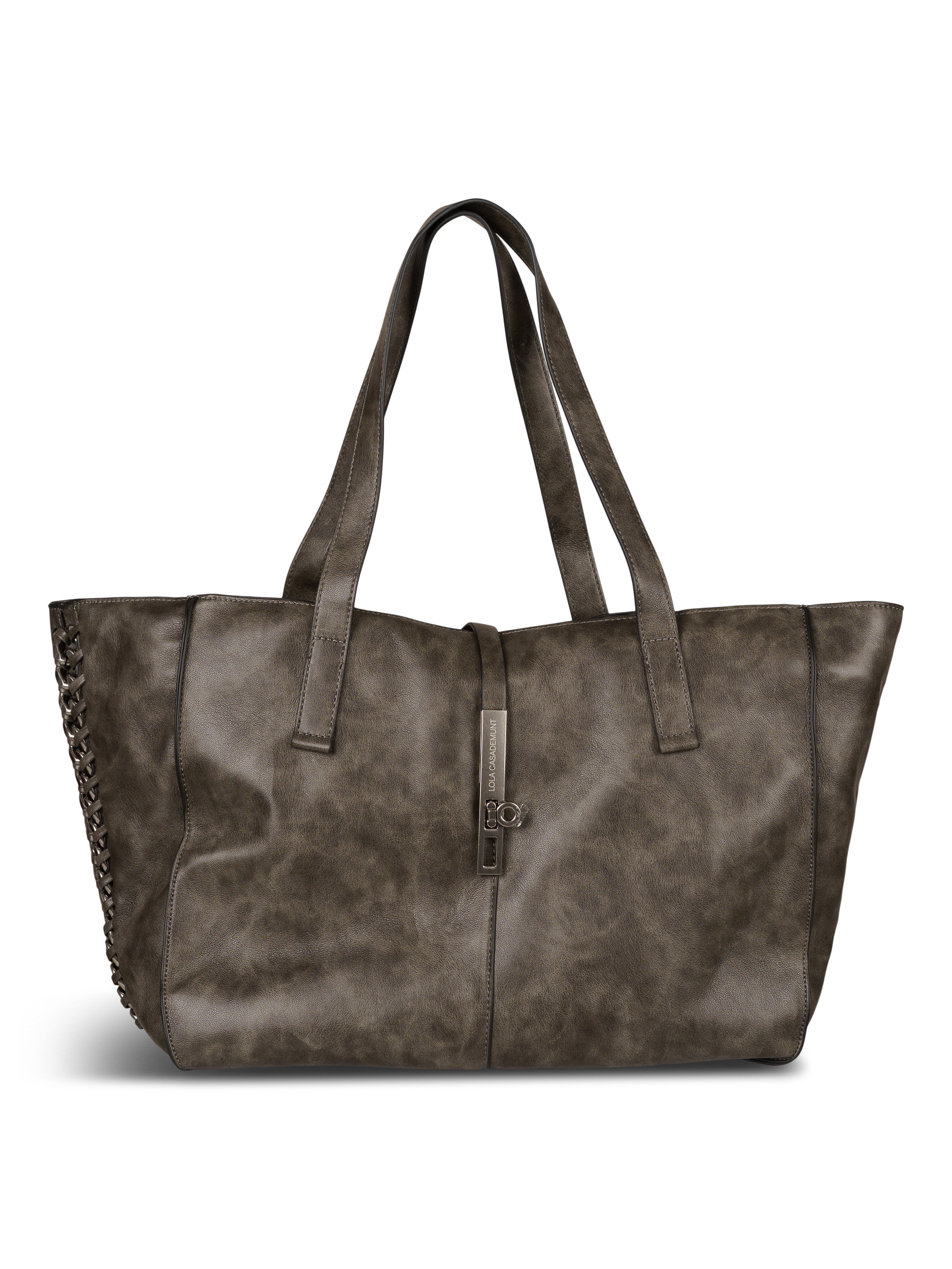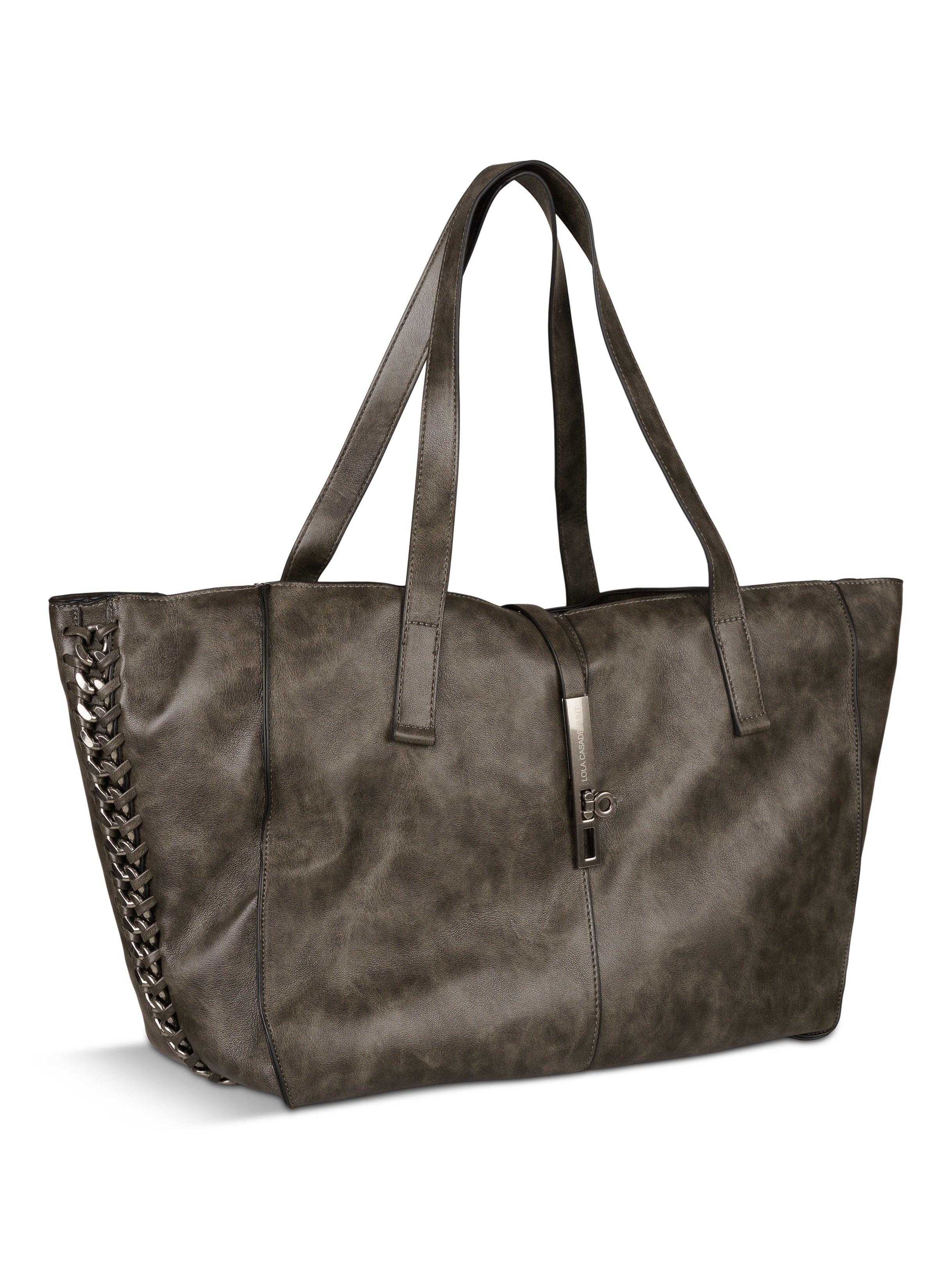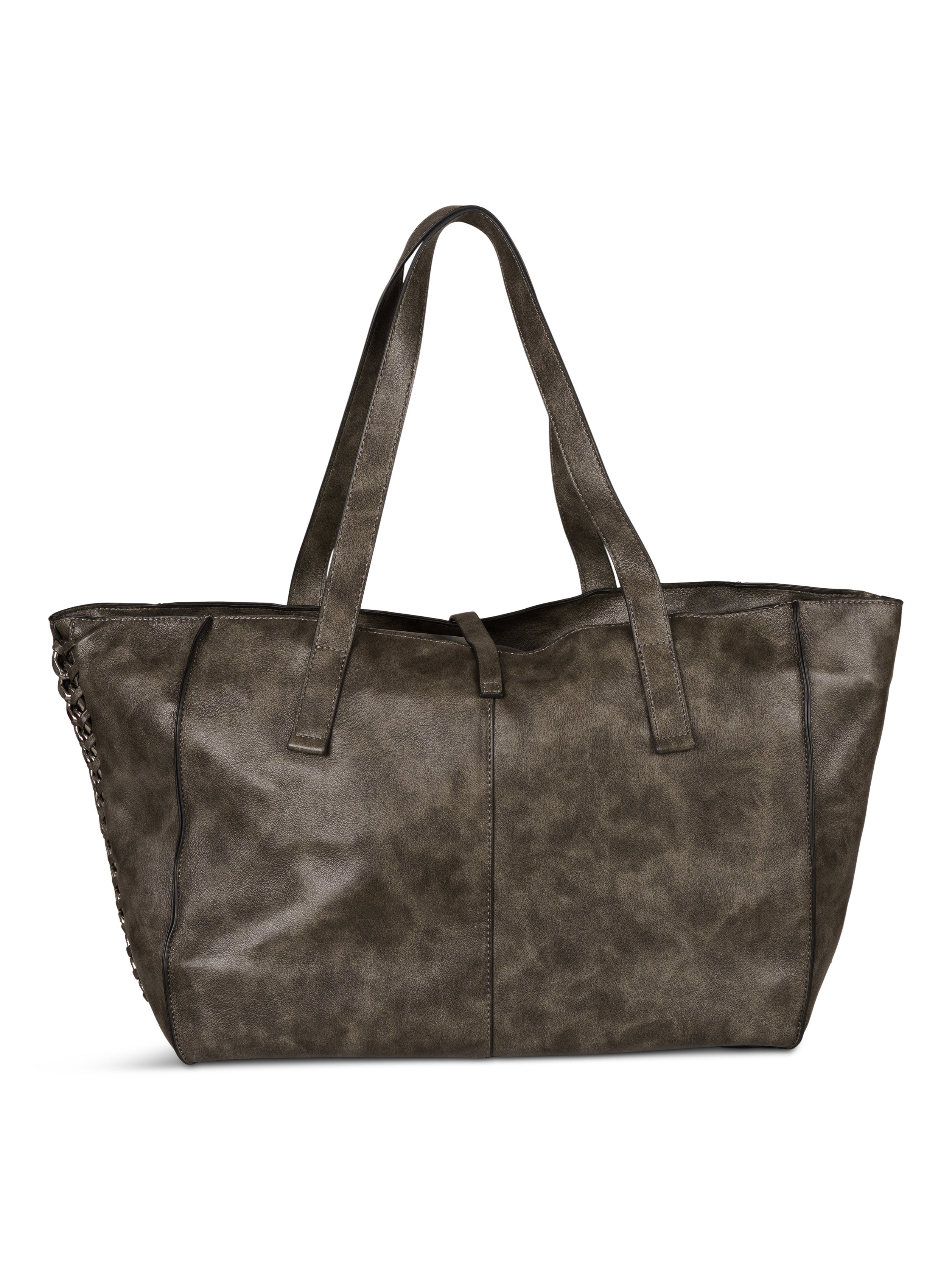 - Rymlig väska i gråmelerad mjuk skinnimitation.