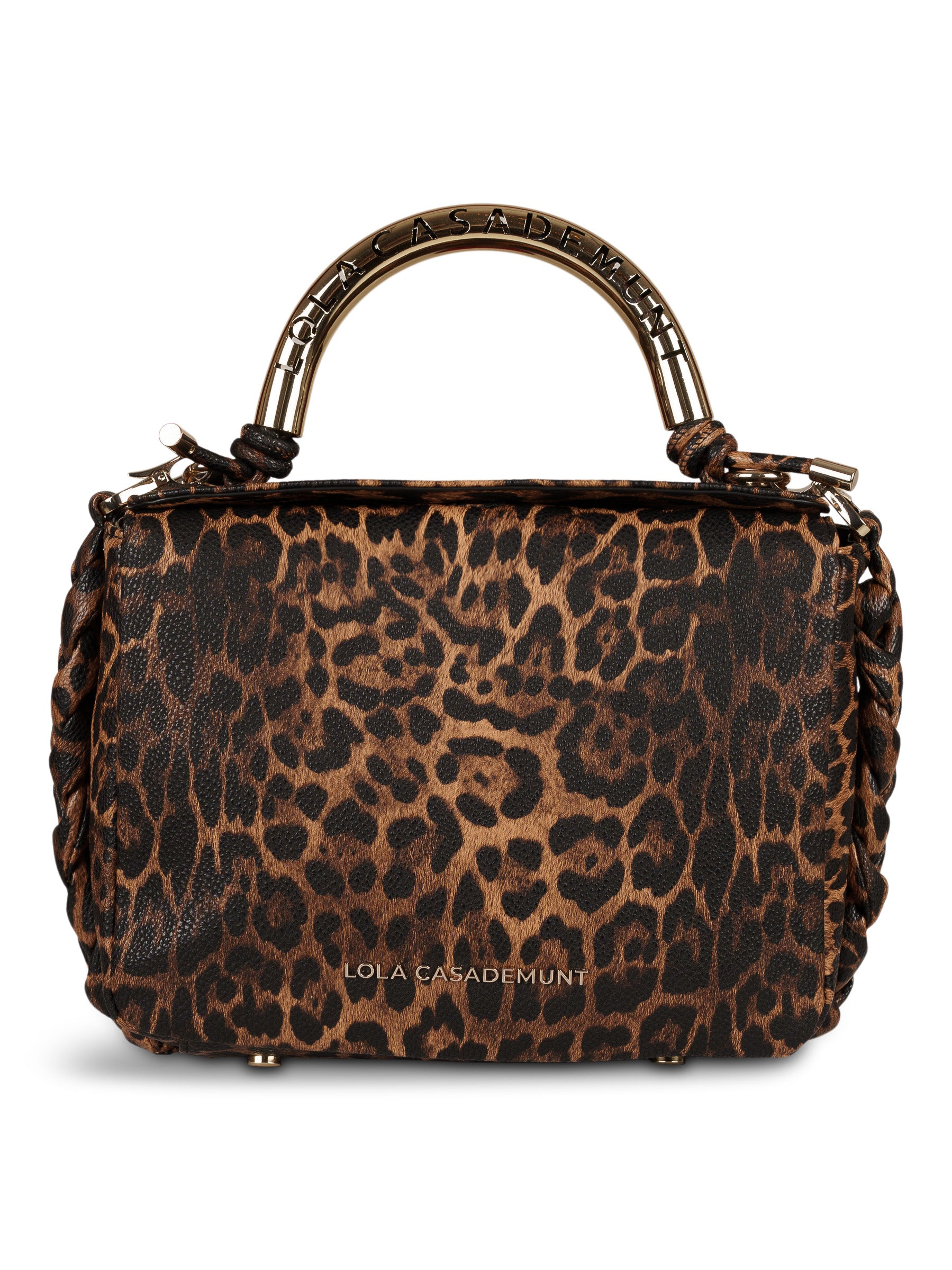 - Djurmönstrad skinnimitation med guldfärgade detaljer.