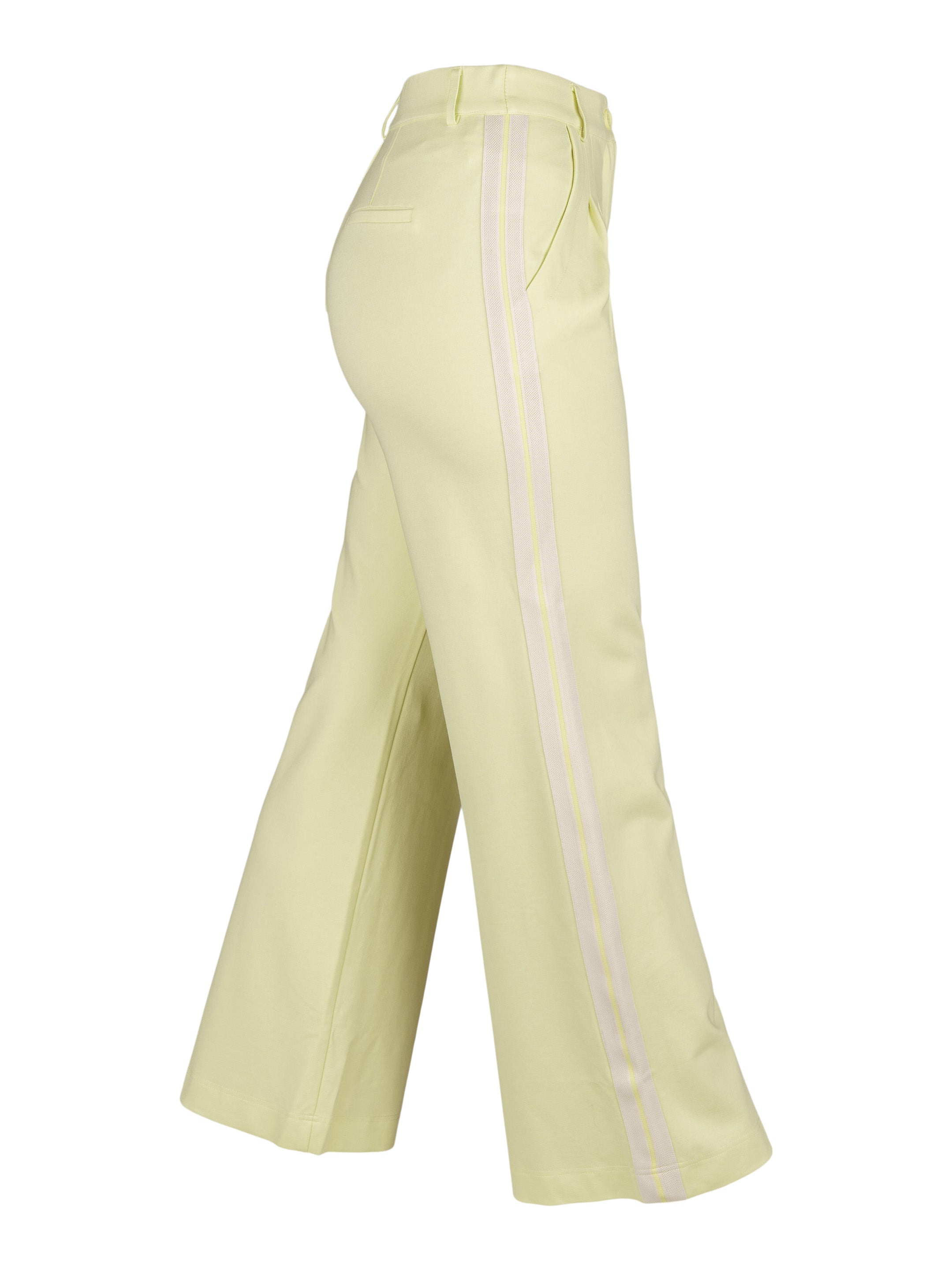 - Bootcut och vida ben med vita revärer längs sidorna.