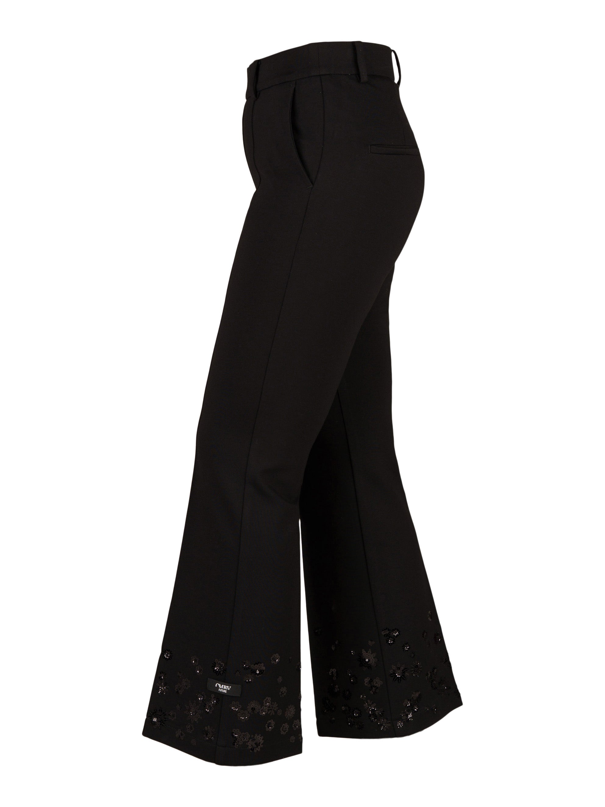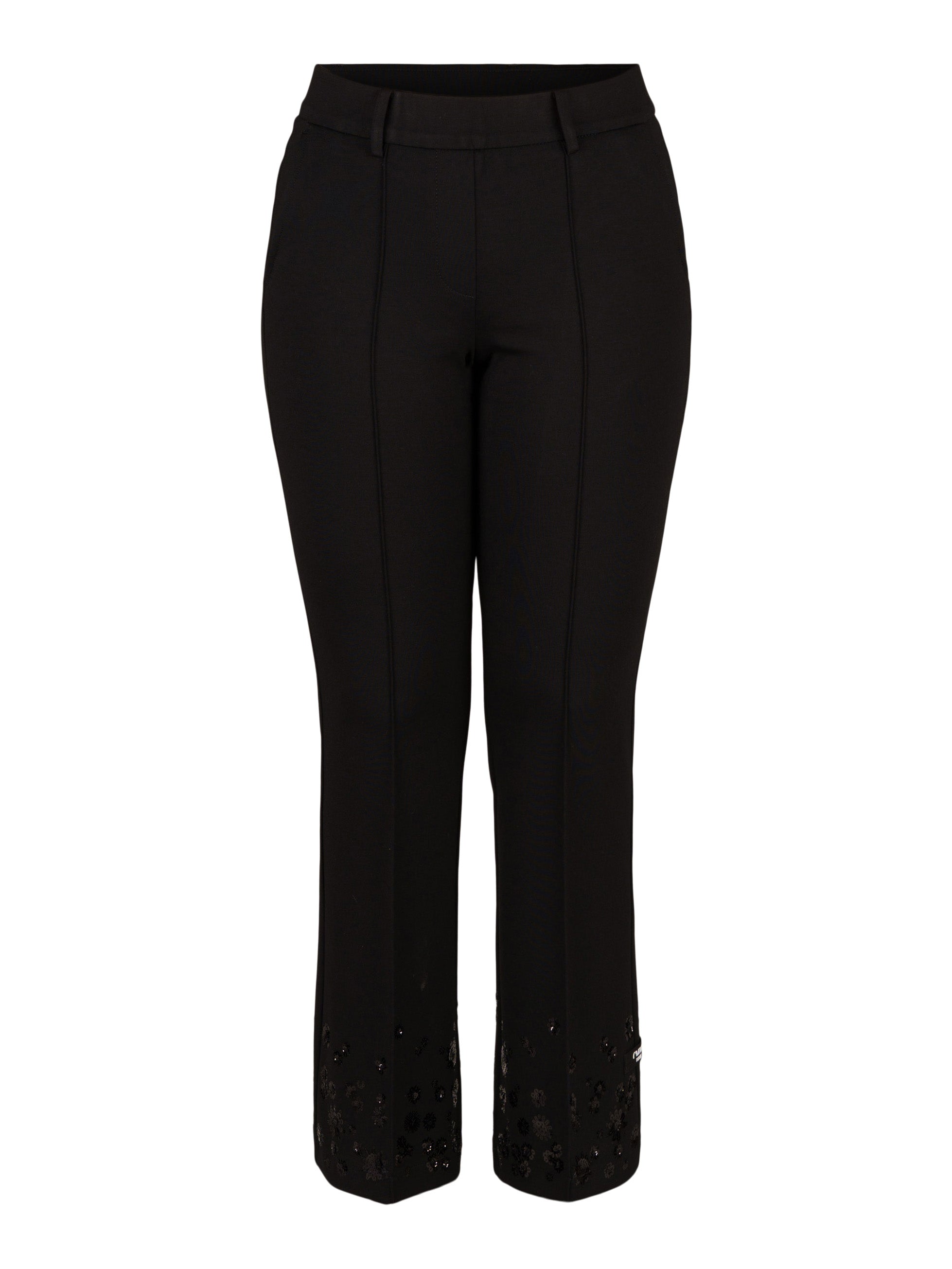 - Sydda svarta paljetter som blommor nedtill på benslut.