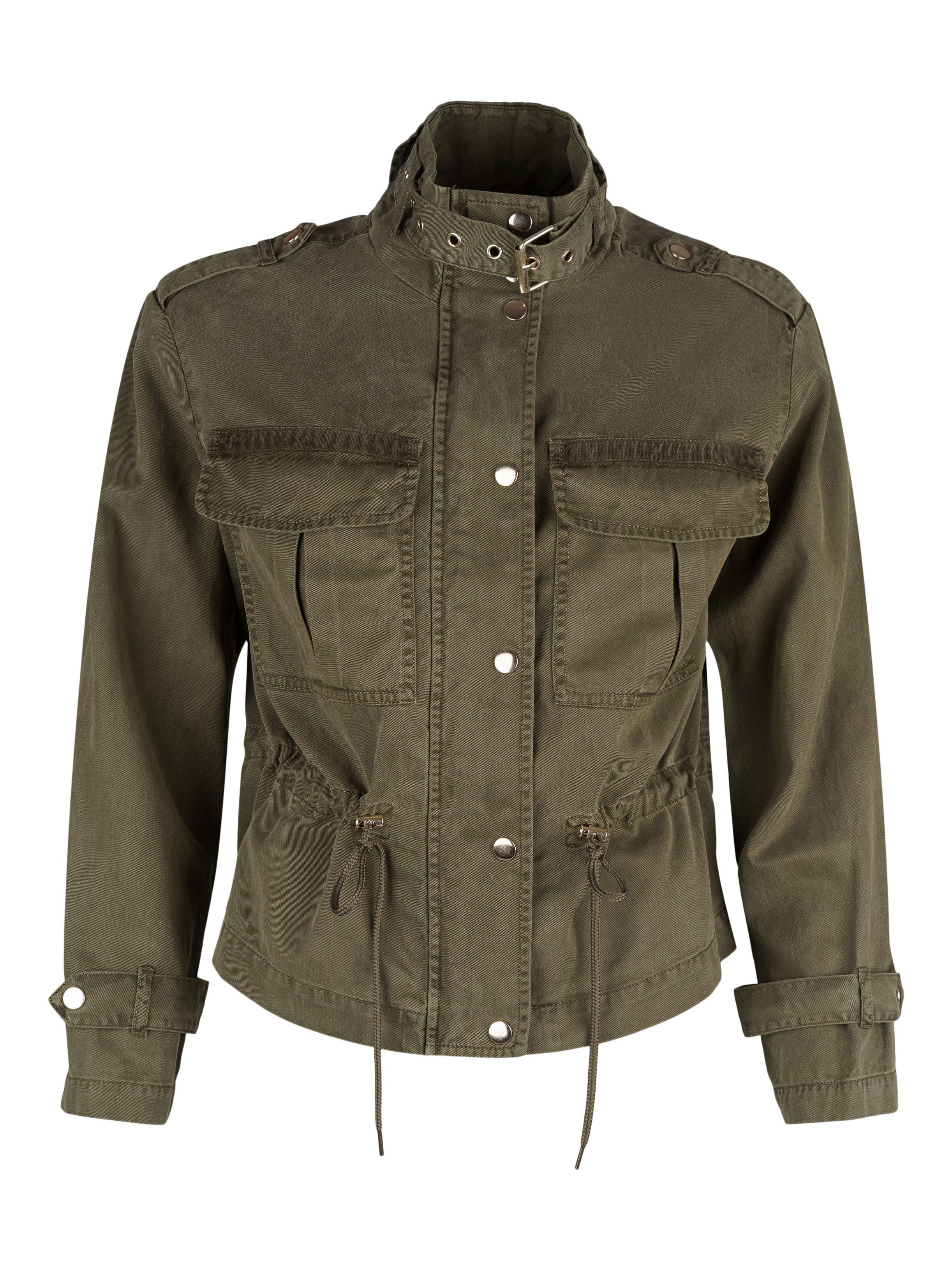 - Lång ärm med justerbara ärmslut och axelklaffar.