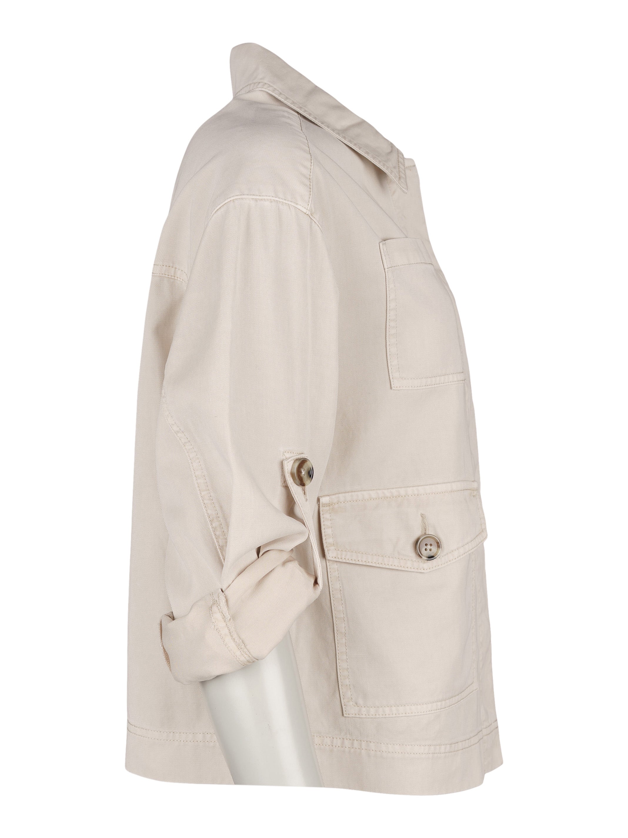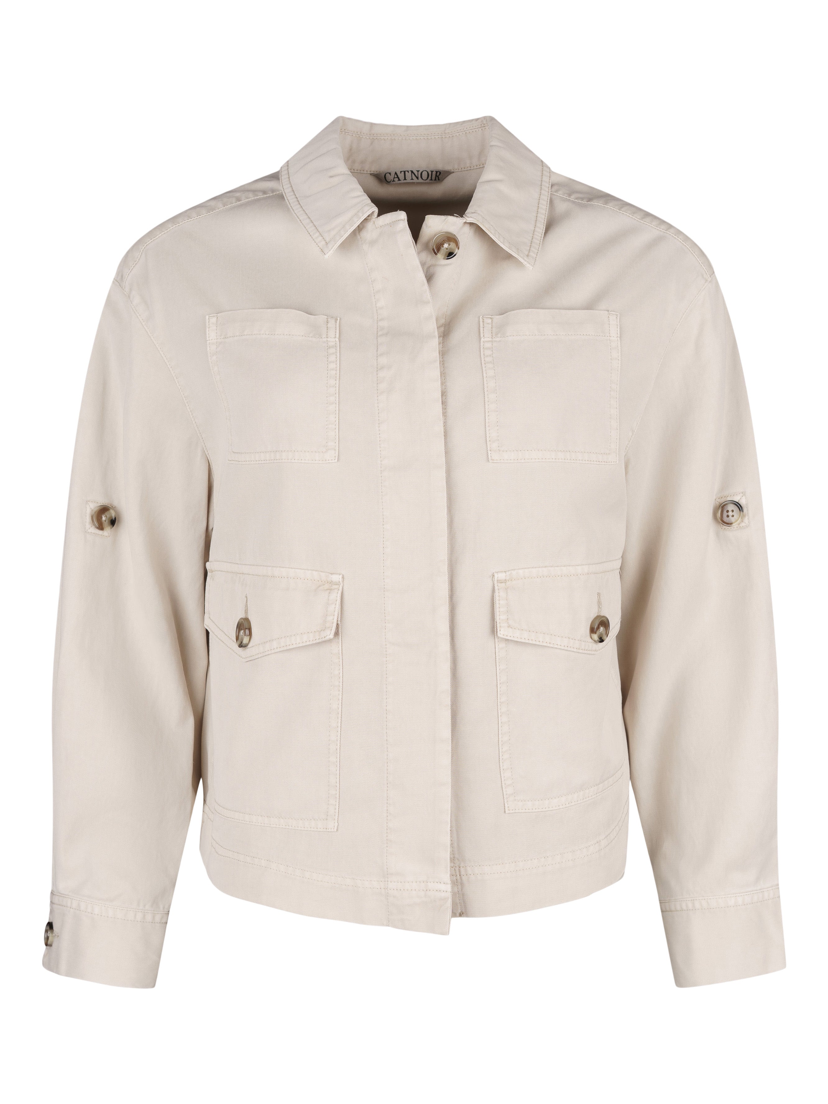 - Lång ärm som kan vikas upp med klaff och knapp.