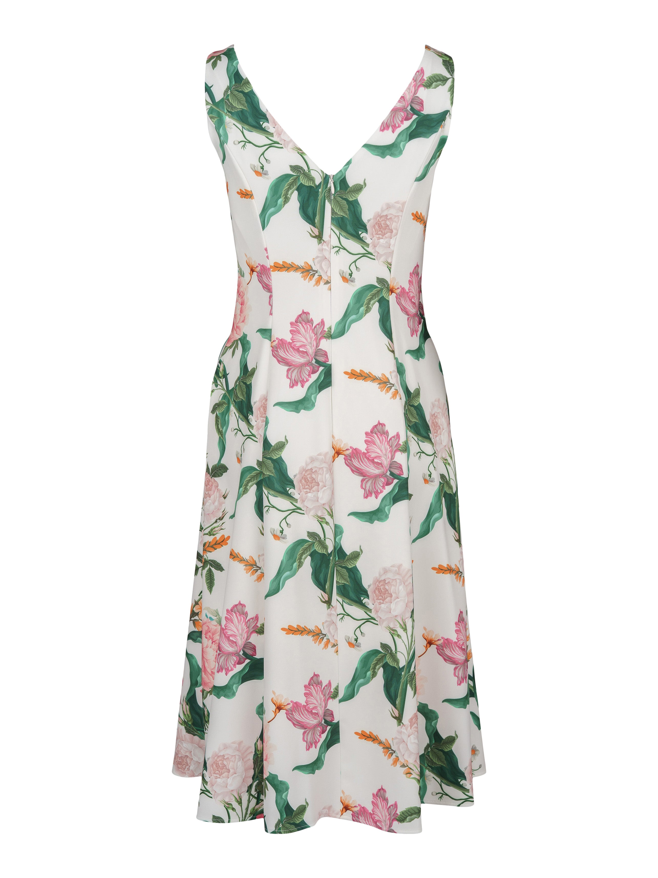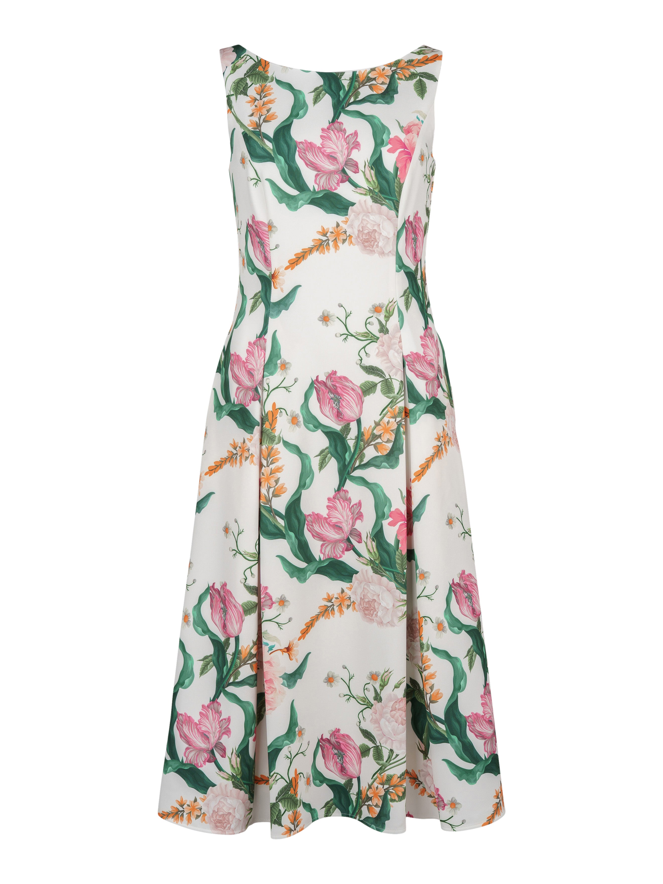 - Ärmlös klänning med blommigt mönster.