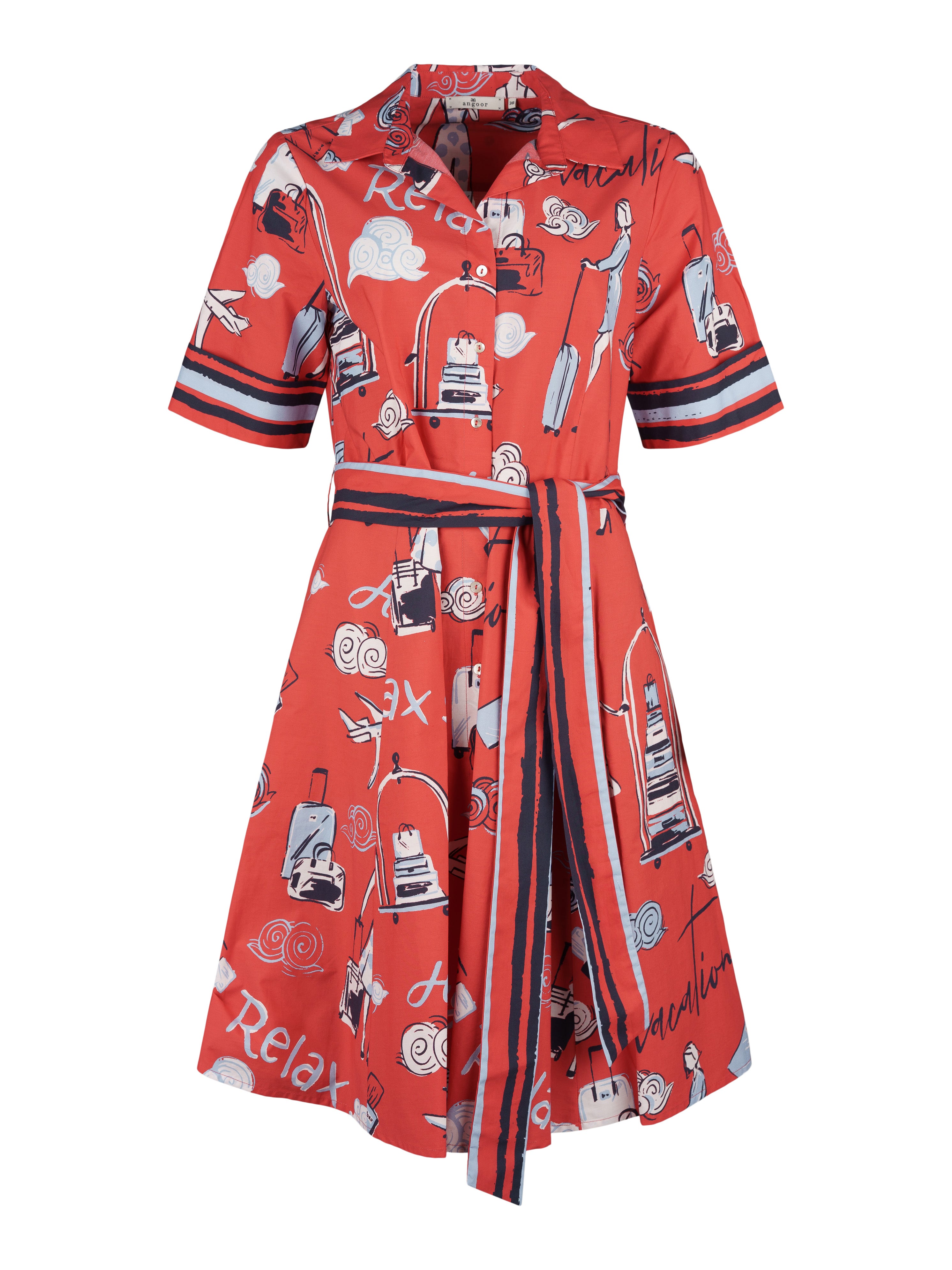 - Skjortkrage och kort ärm med uppvikta ärmslut.
