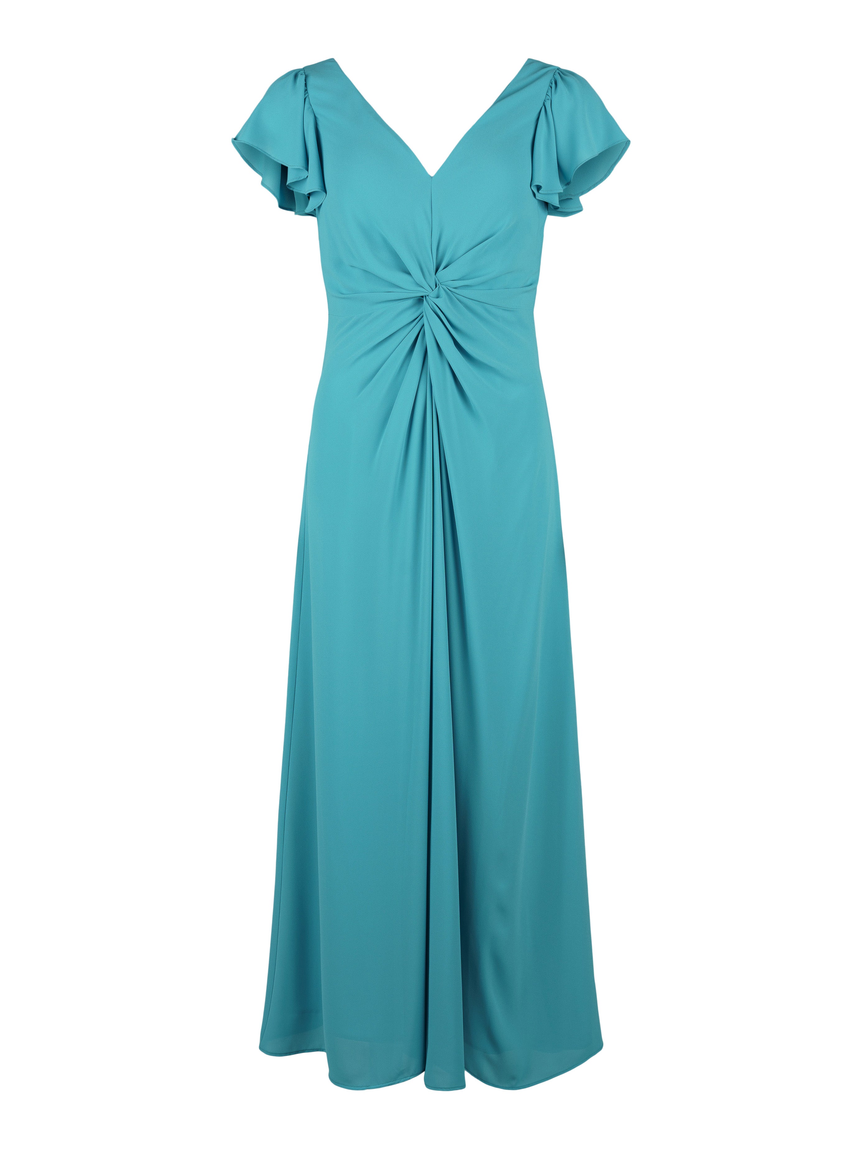 - Lång modell med tvistat tyg framtill.