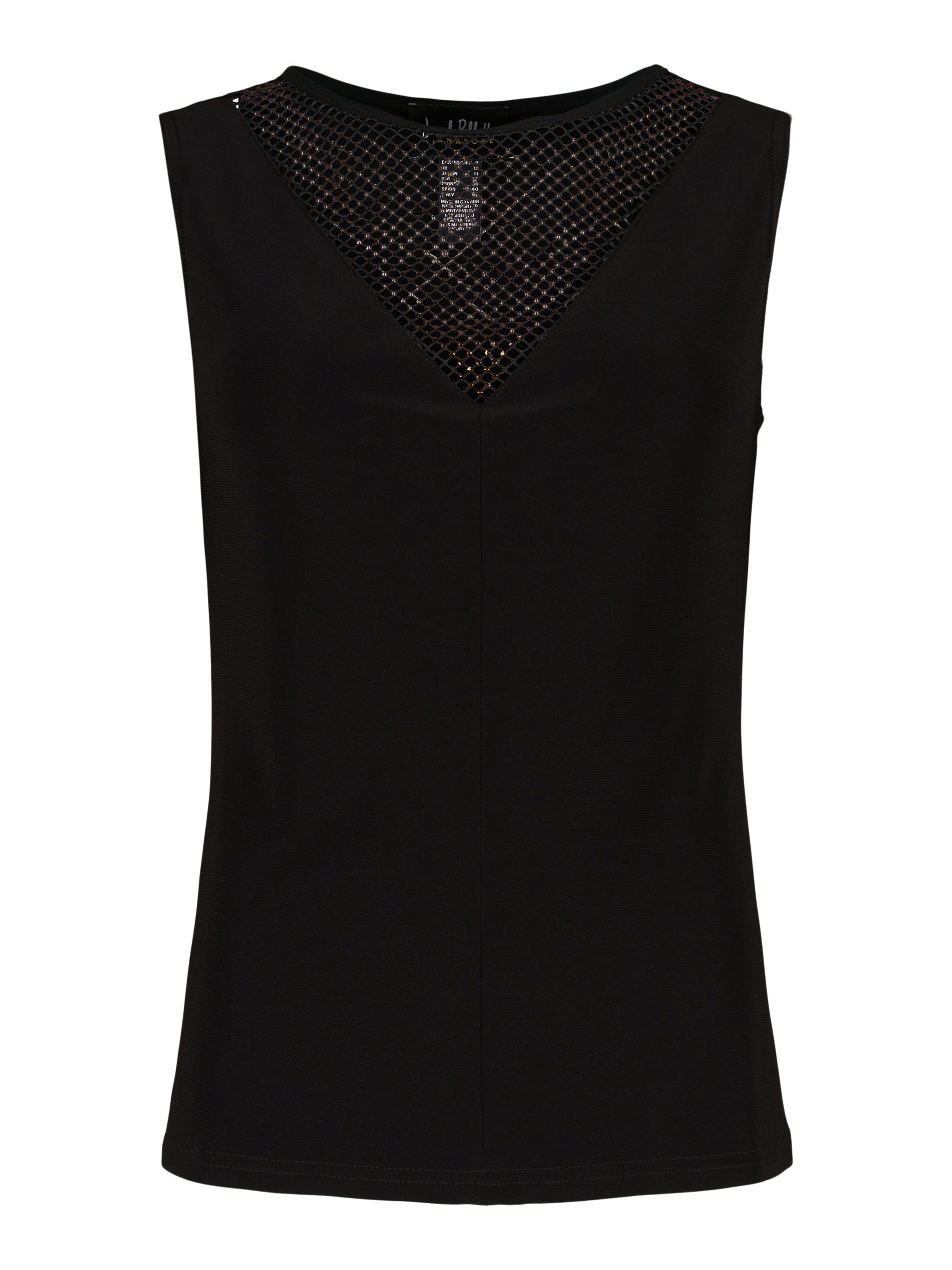 - Nätat material framtill vid halsringning dekorerad med kopparfärgade strasstenar.