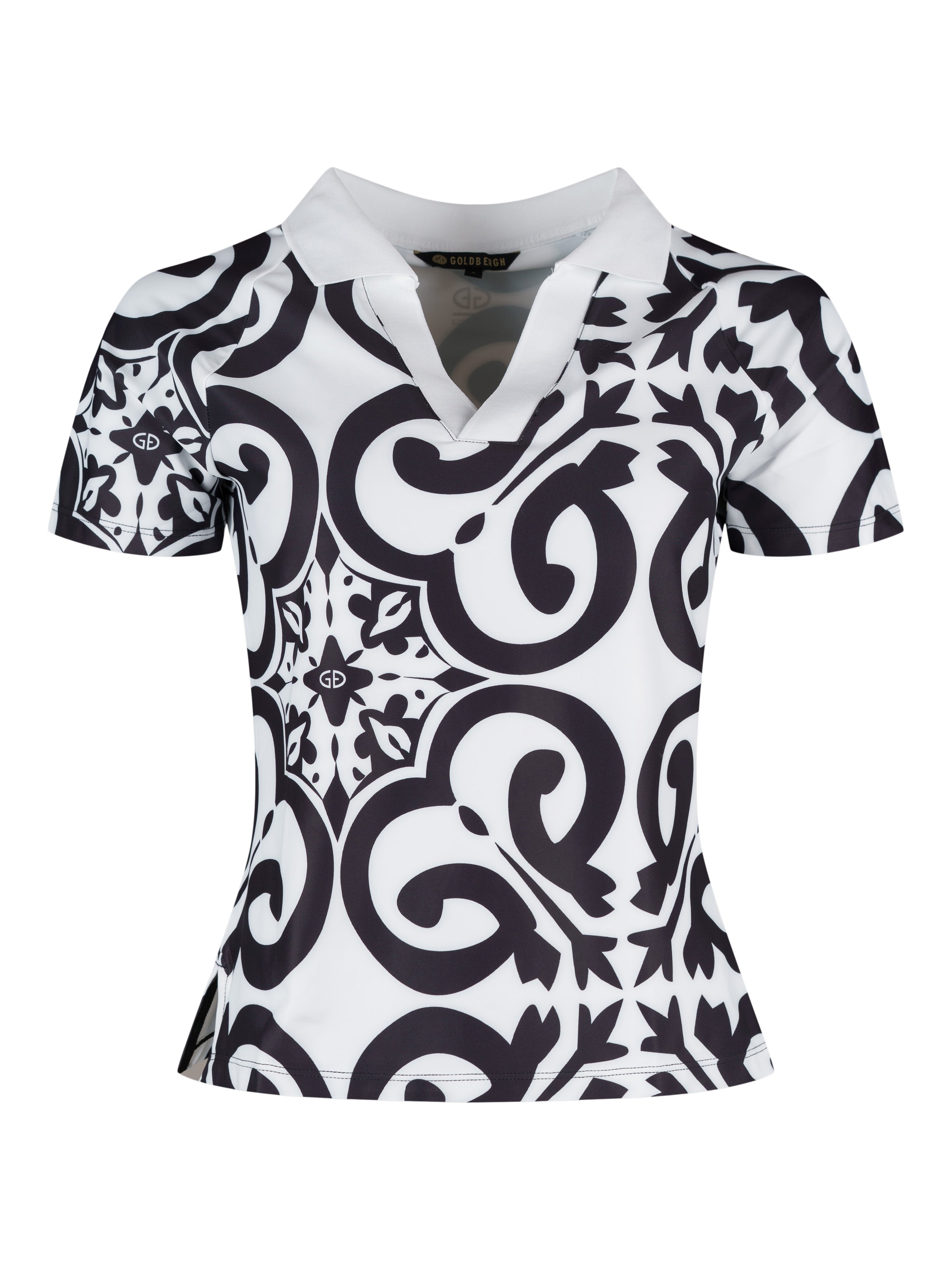 - V-halsringning med pikékrage.