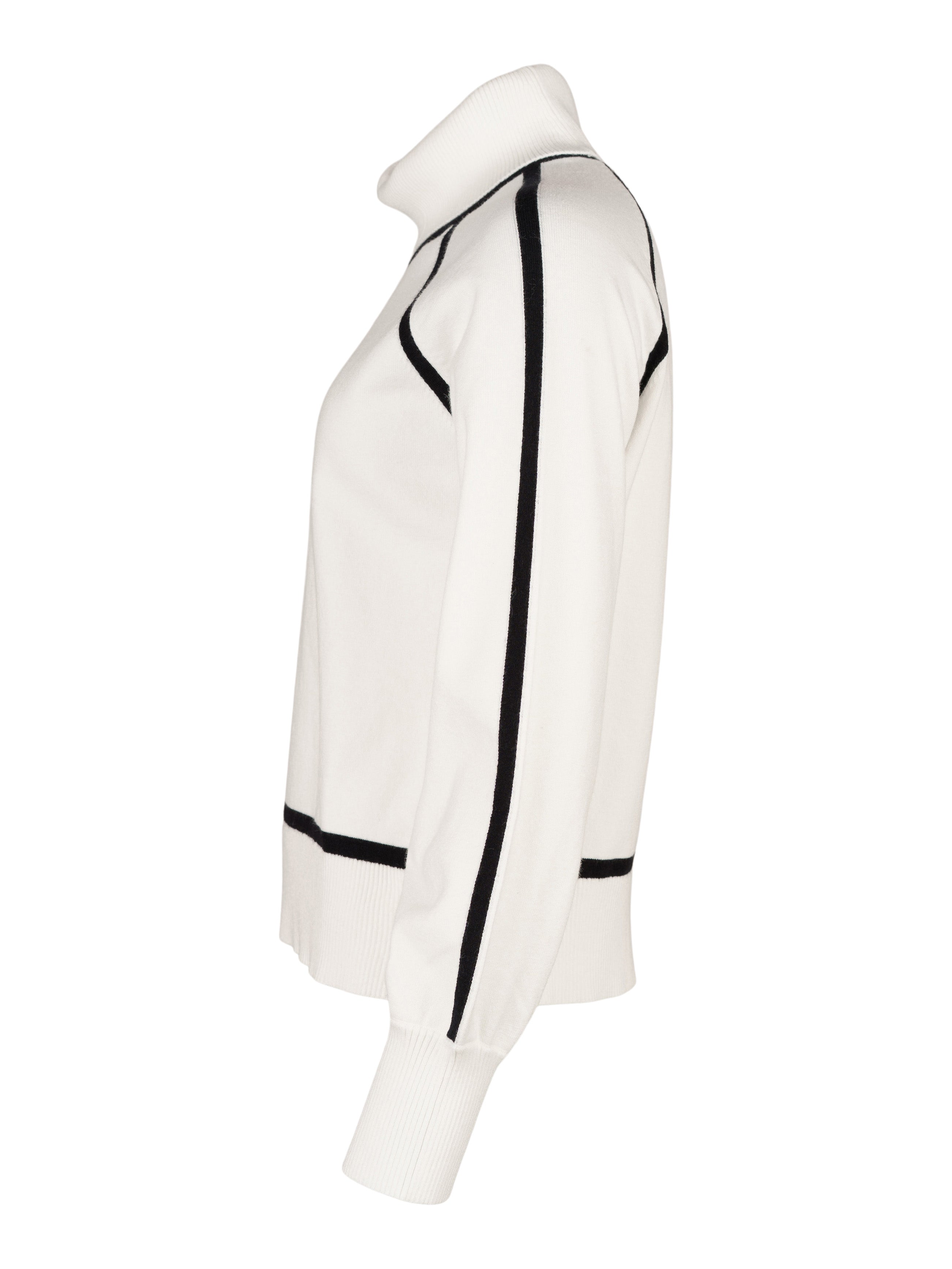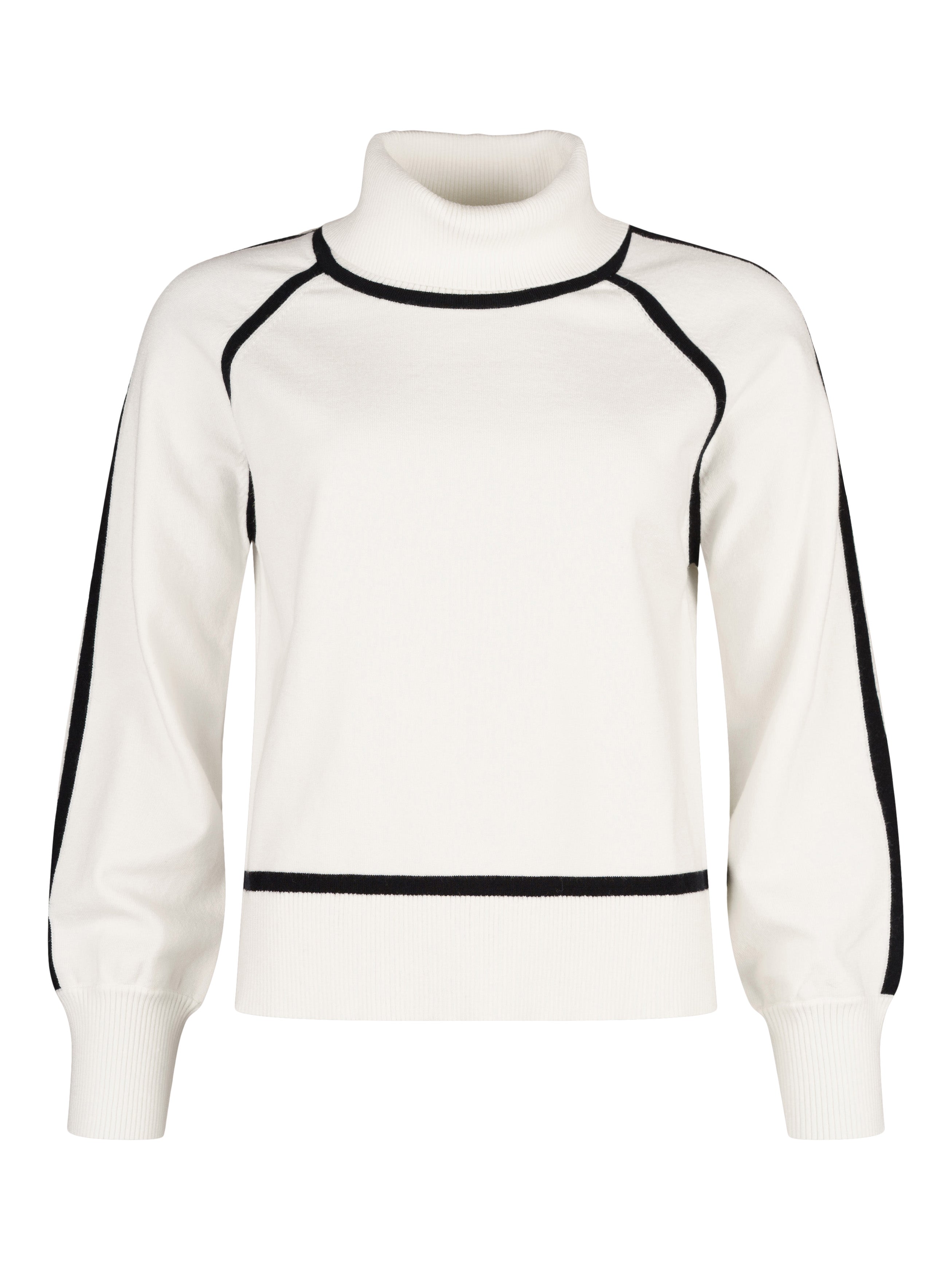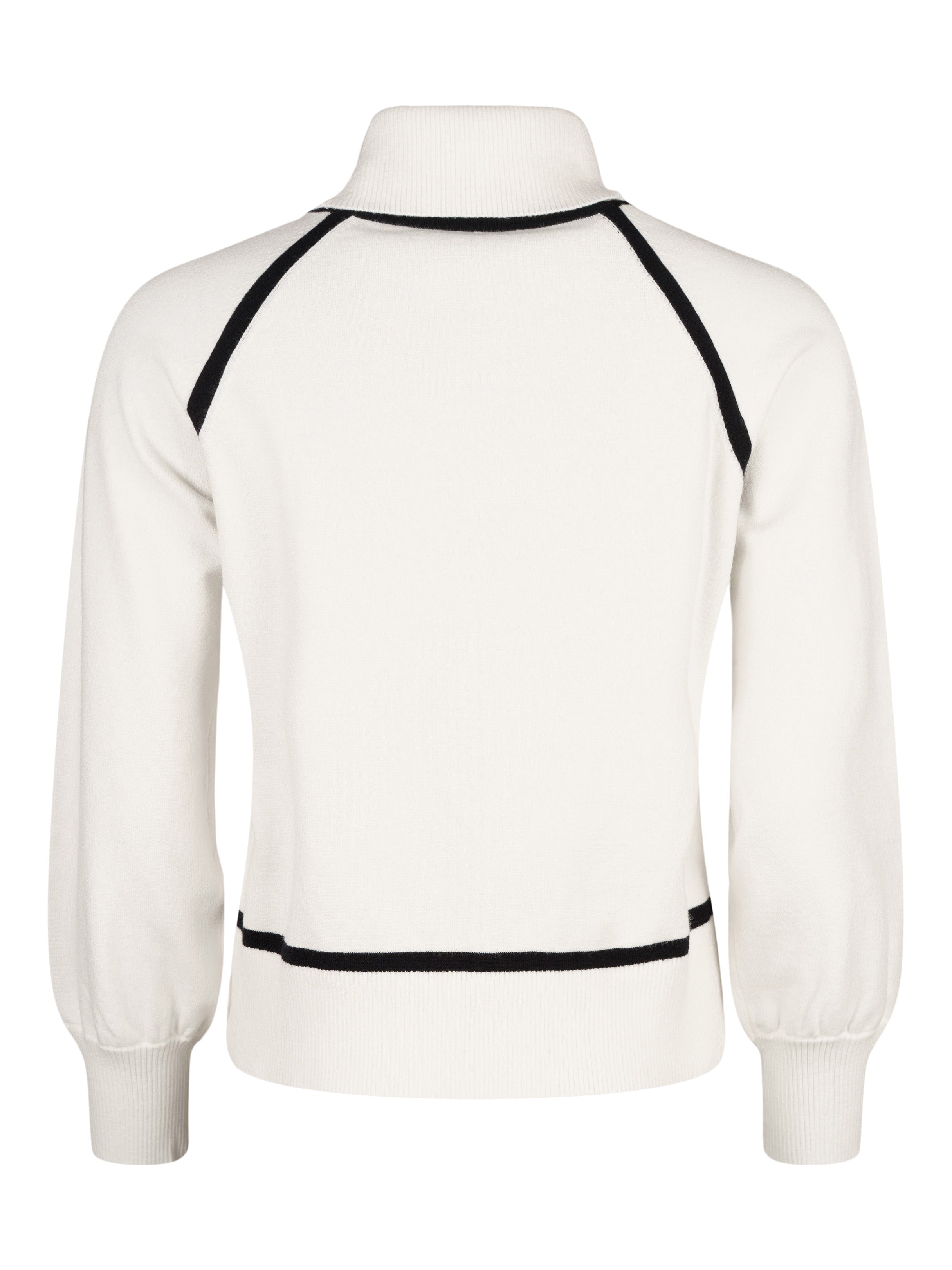 - Finstickad tröja i vitt med svarta detaljer som ramar in.
